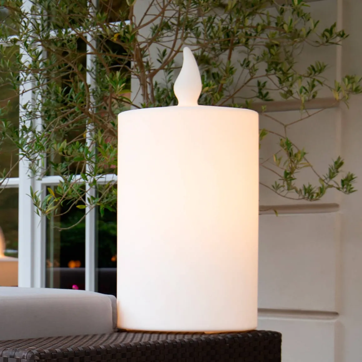 Bringen Sie sanftes Kerzenlicht in moderner Form in Ihr Zuhause – mit der Shining Candle von 8 seasons design, Ihrer stilvollen Dekoleuchte für drinnen und draußen.