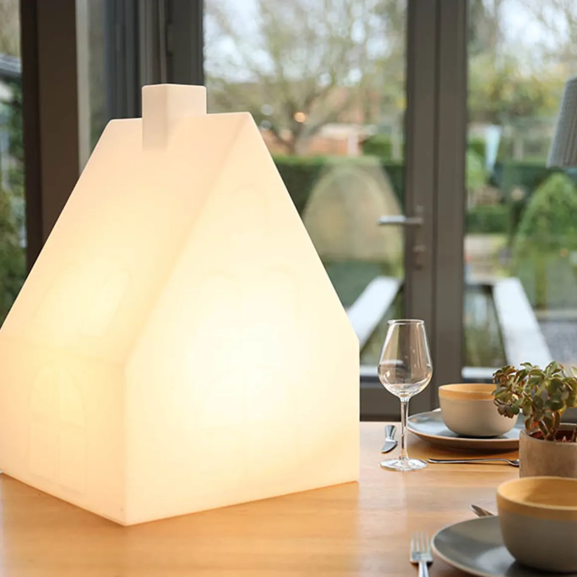 - Schöne Dekolampe in Form eines schimmernden Hauses