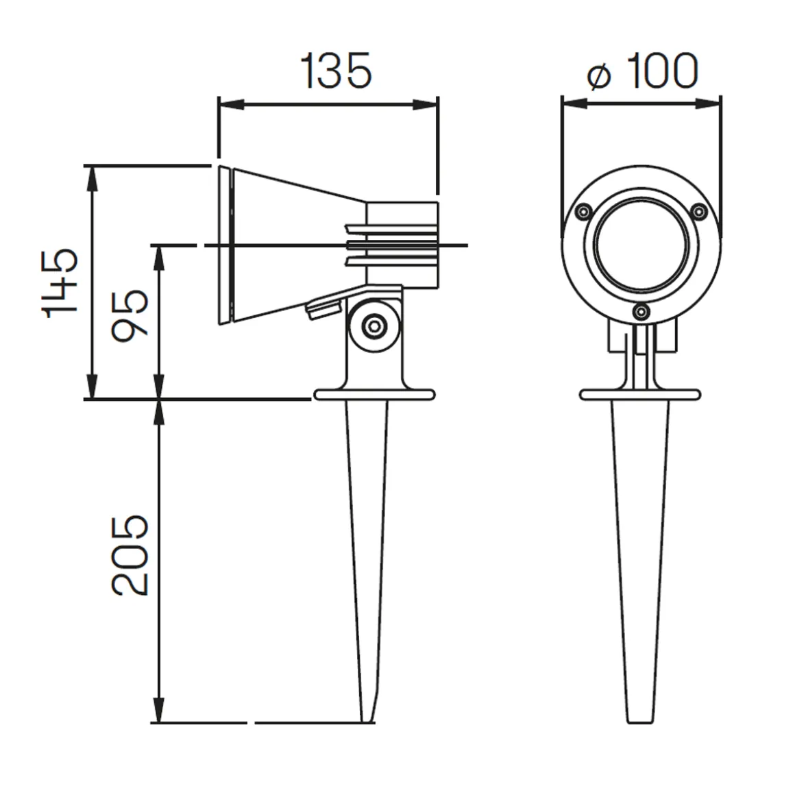 - Flexibler Erdspießstrahler aus korrosionsbeständigem Aluminiumguss
