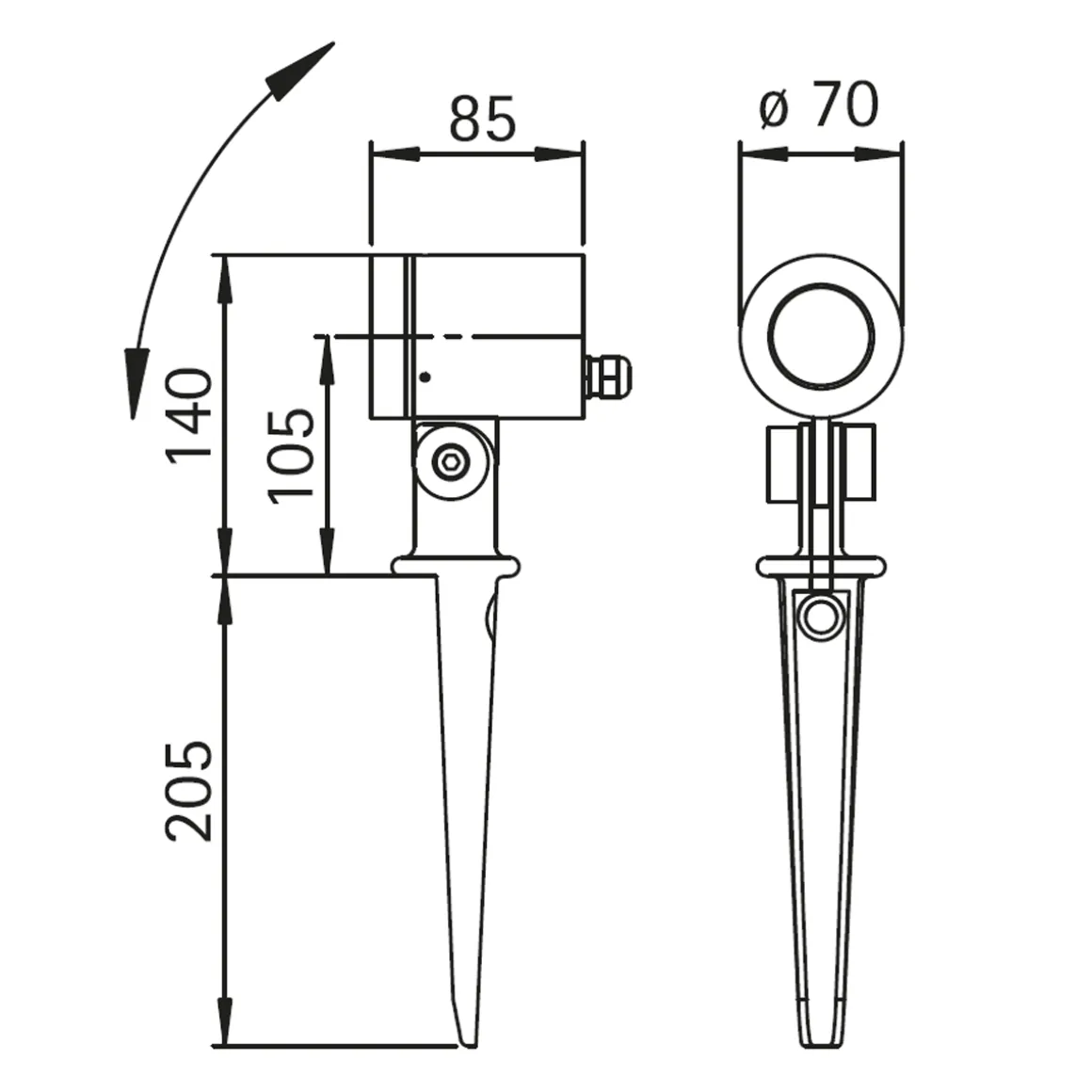 - Erdspießstrahler mit um 120° schwenkbarem Kopf