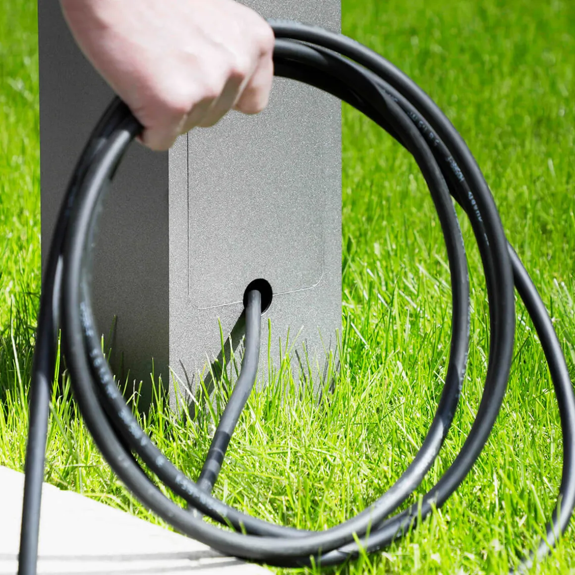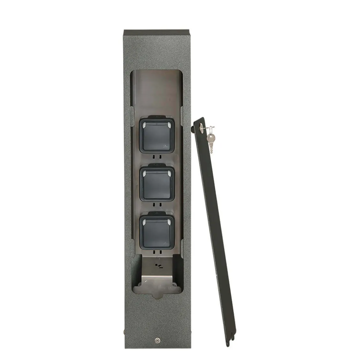 - Modern-schlichte Steckdosensäule mit abschließbarer Tür