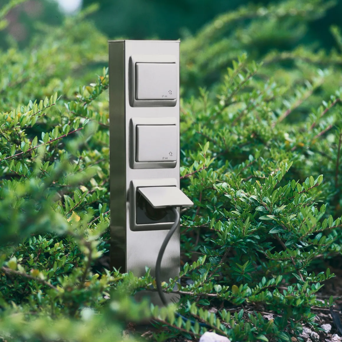 - Schlanke Steckdosensäule aus Edelstahl