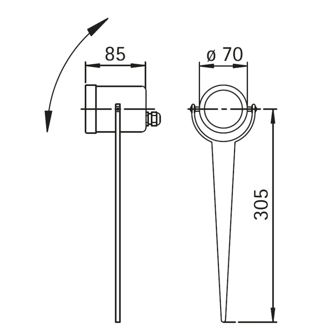 - Spießstrahler mit um 120° schwenkbarem Kopf