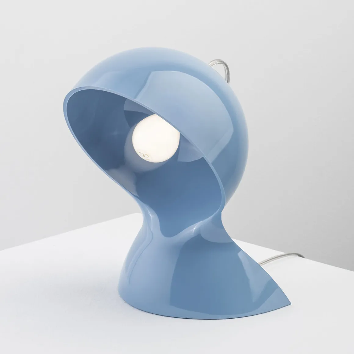 Gefertigt im Spritzgussverfahren aus hochwertigem thermoplastischem Material, überzeugt die Tischlampe durch ihre glänzende, farbige Oberfläche, die das elegant umhüllt und Blendungen vermeidet. Das Ergebnis: ein weiches, gleichmäßiges Licht, das Räume stilvoll akzentuiert, ohne sich in den Vordergrund zu drängen. Bedient wird die über einen Schnurschalter.