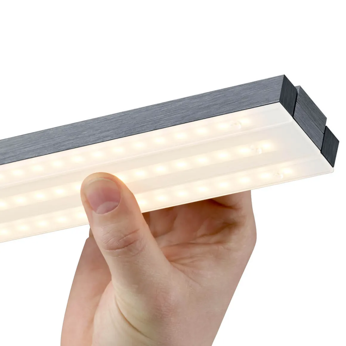 Das Dimmen der Bankamp Lightline II up & down LED Pendelleuchte erfolgt durch Kippen des Leuchtenpendels (Vertical dim). Ausgelöst wird der Dimm-Impuls bereits ab einer Neigung von 12°. Das Herunterdimmen erfolgt geräuschlos und absolut flackerfrei – auf bis zu 1 Watt Lichtleistung, was dem Effekt von Kerzenschein entsprecht.