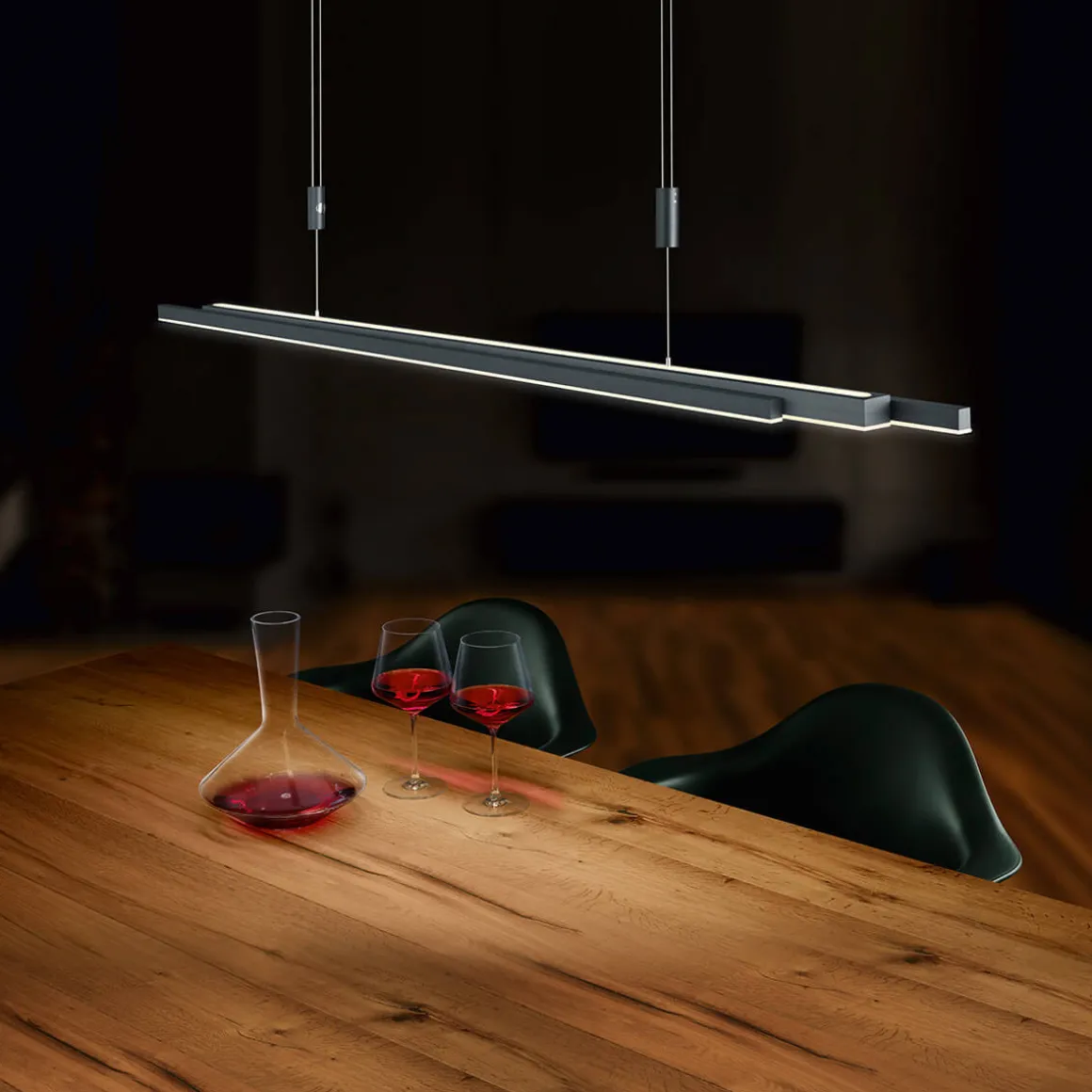 - Symmetrisch und asymmetrisch ausziehbarer Leuchtenkorpus für eine Anpassung an unterschiedliche Tischlängen (150 bis 290 cm)