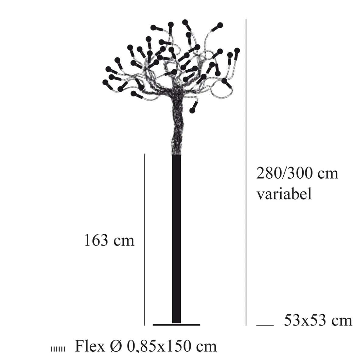 | Sonstige Maße: | Leuchtenfuß: 53×53 cm, Stamm-Höhe: 163 cm |