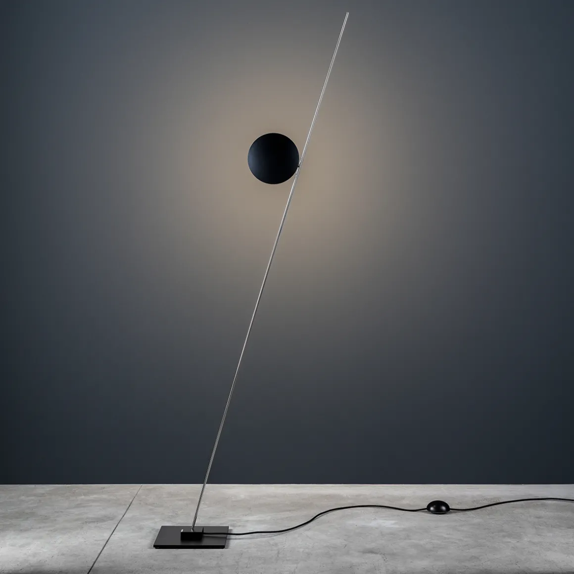 Die Catellani & Smith Lederam F1 Stehleuchte ist in zahlreichen farblich aufeinander abgestimmten Oberflächenkombinationen zu erwerben. Die aus Aluminium gefertigte Reflektorscheibe ist weiß, schwarz lackiert oder mit Blattgold bzw. Blattkupfer belegt. Verknüpft wird sie mit einer schmalen Stange aus satiniertem, vergoldetem oder schwarz lackiertem Metall. Der Leuchtenfuß ist weiß (Ausführung Scheibe weiß), satiniert oder schwarz (Ausführung Scheibe schwarz / Gold / Kupfer). Über einen Dimmer am Leuchtenkabel kann die Lederam F1 Stehleuchte in ihrer Lichtstärke variiert werden.