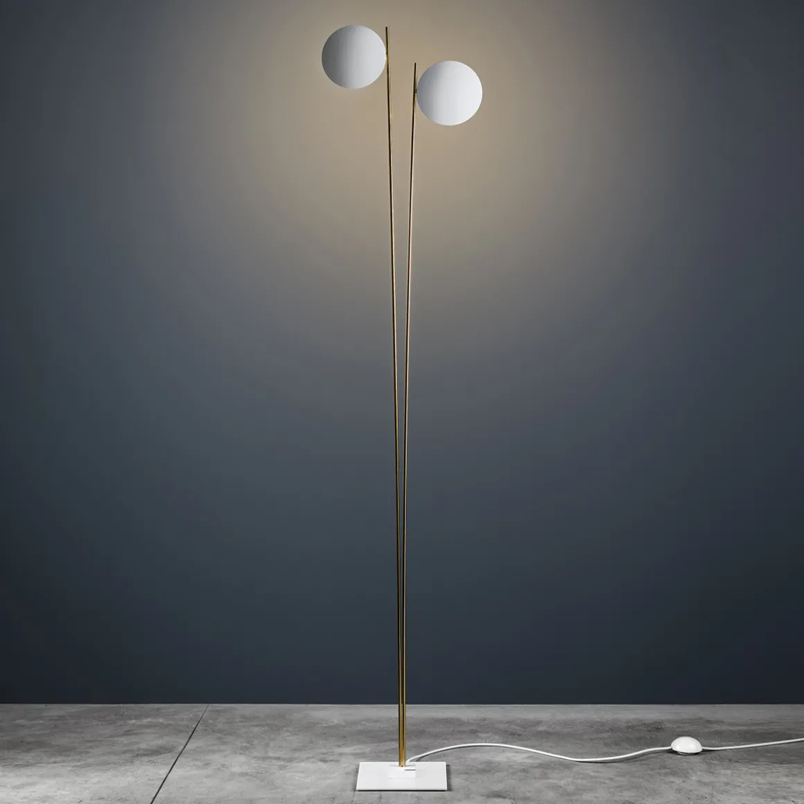| Material/Oberfläche: | Reflektorscheiben: schwarz / Gold / Kupfer / weiß, Stange: satiniert / schwarz / Gold, Fuß: schwarz / weiß |
