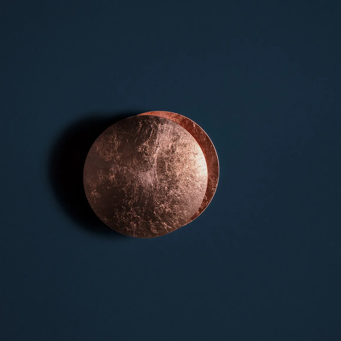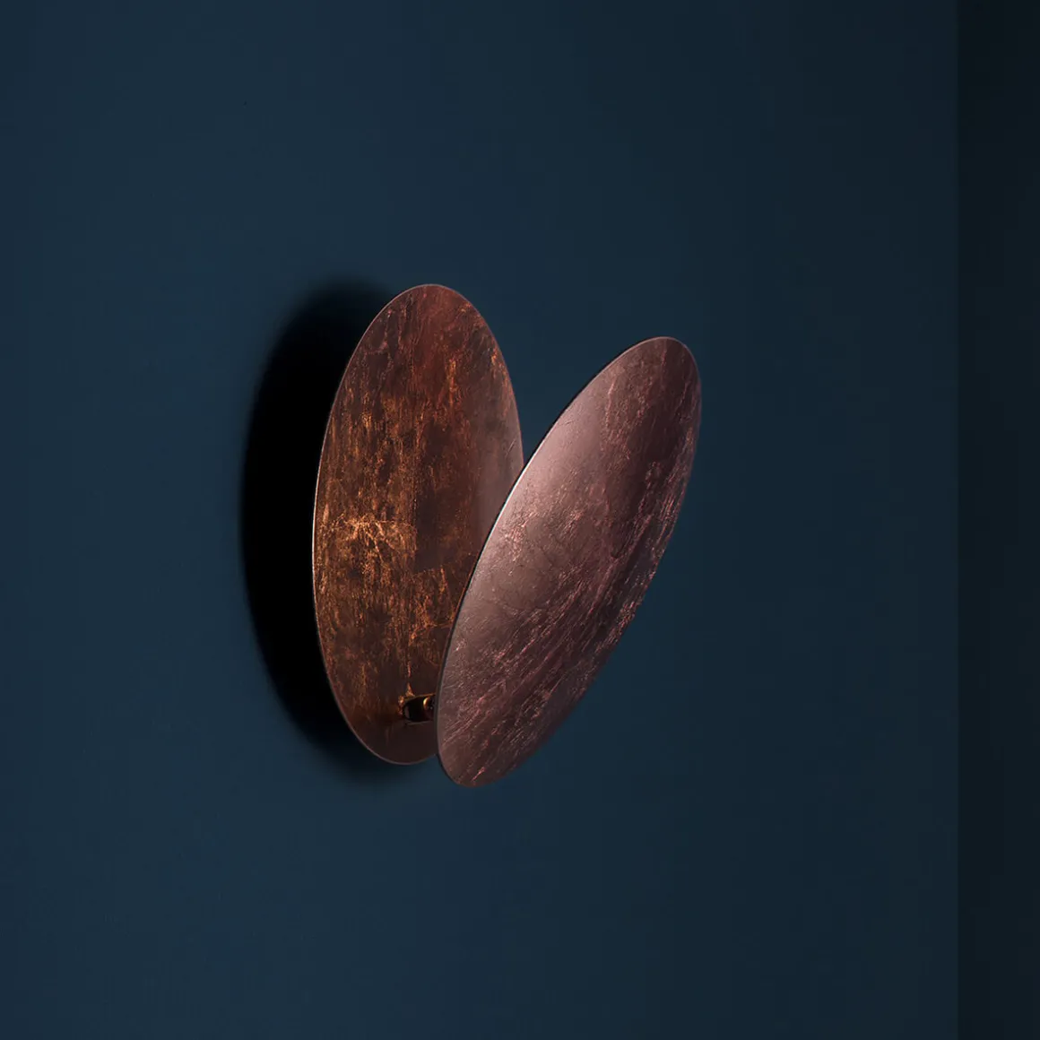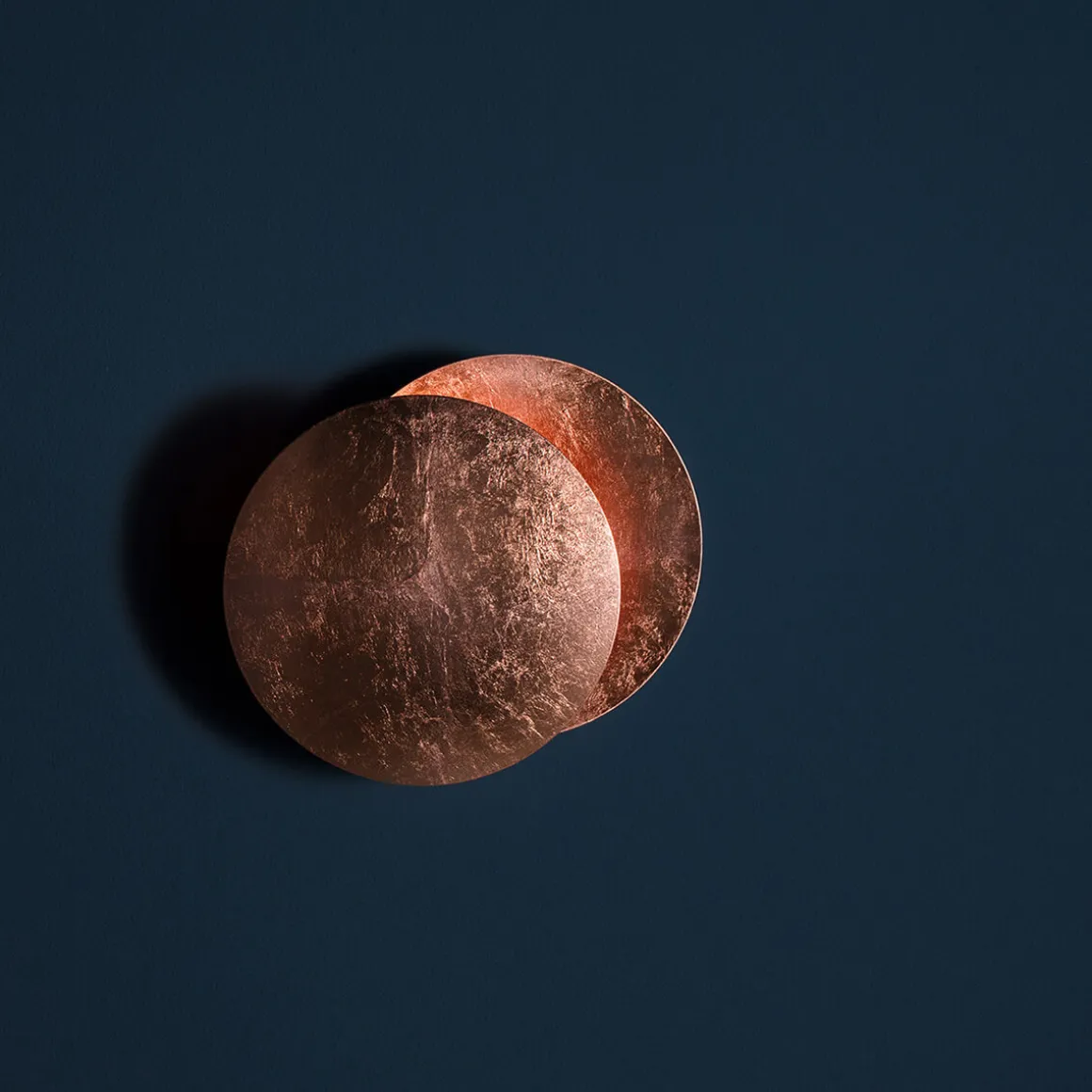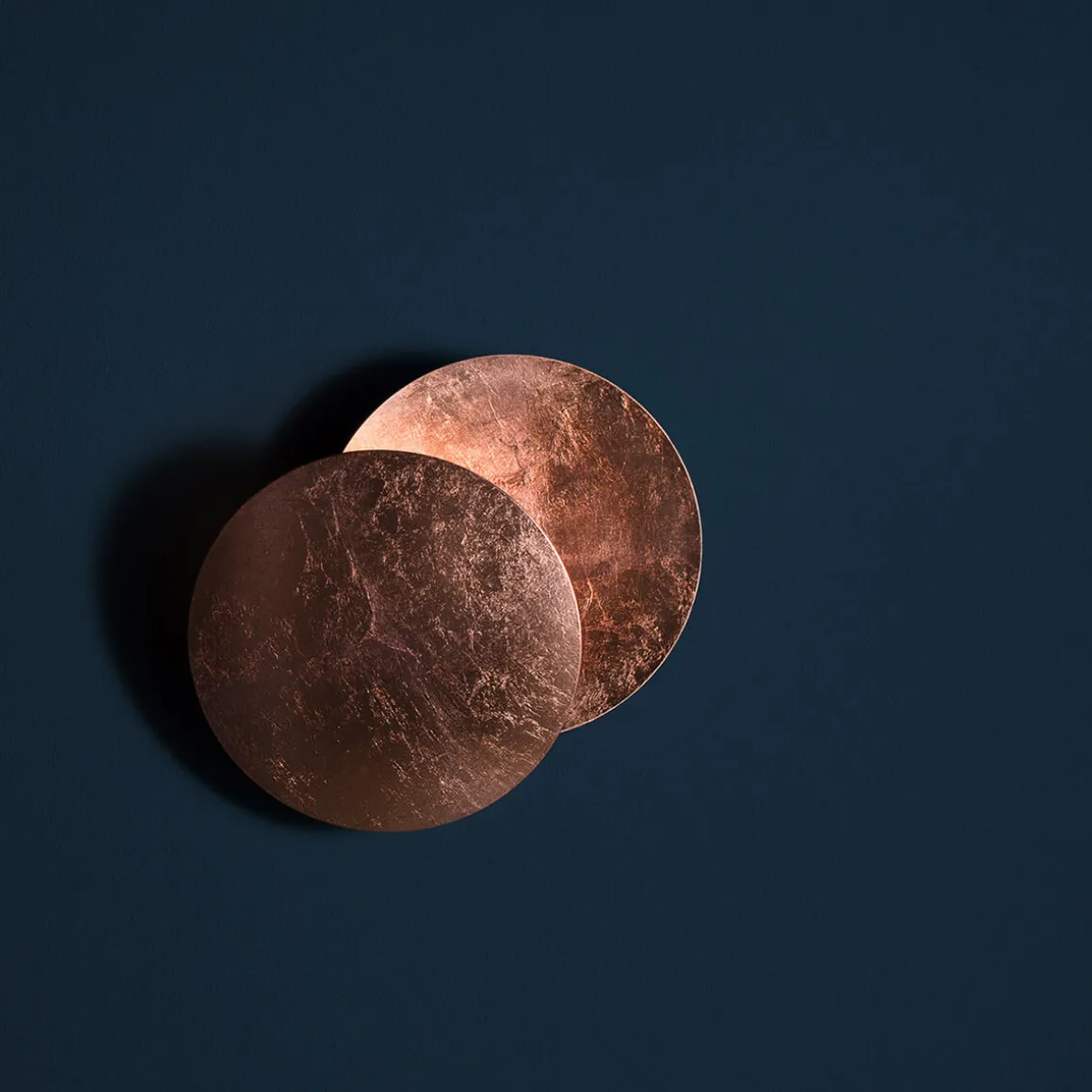 Der Leuchtenkörper besteht aus zwei elegant gewölbten Aluminiumscheiben. Die vordere Scheibe ist schwenkbar und über ein Metallgelenk mit der hinteren Reflektorscheibe verbunden. Durch das Verstellen der vorderen Scheibe können Sie das Schattenspiel und den Lichtwirkungskreis individuell anpassen. Das integrierte LED-Modul sorgt für ein energieeffizientes, warmweißes Licht.