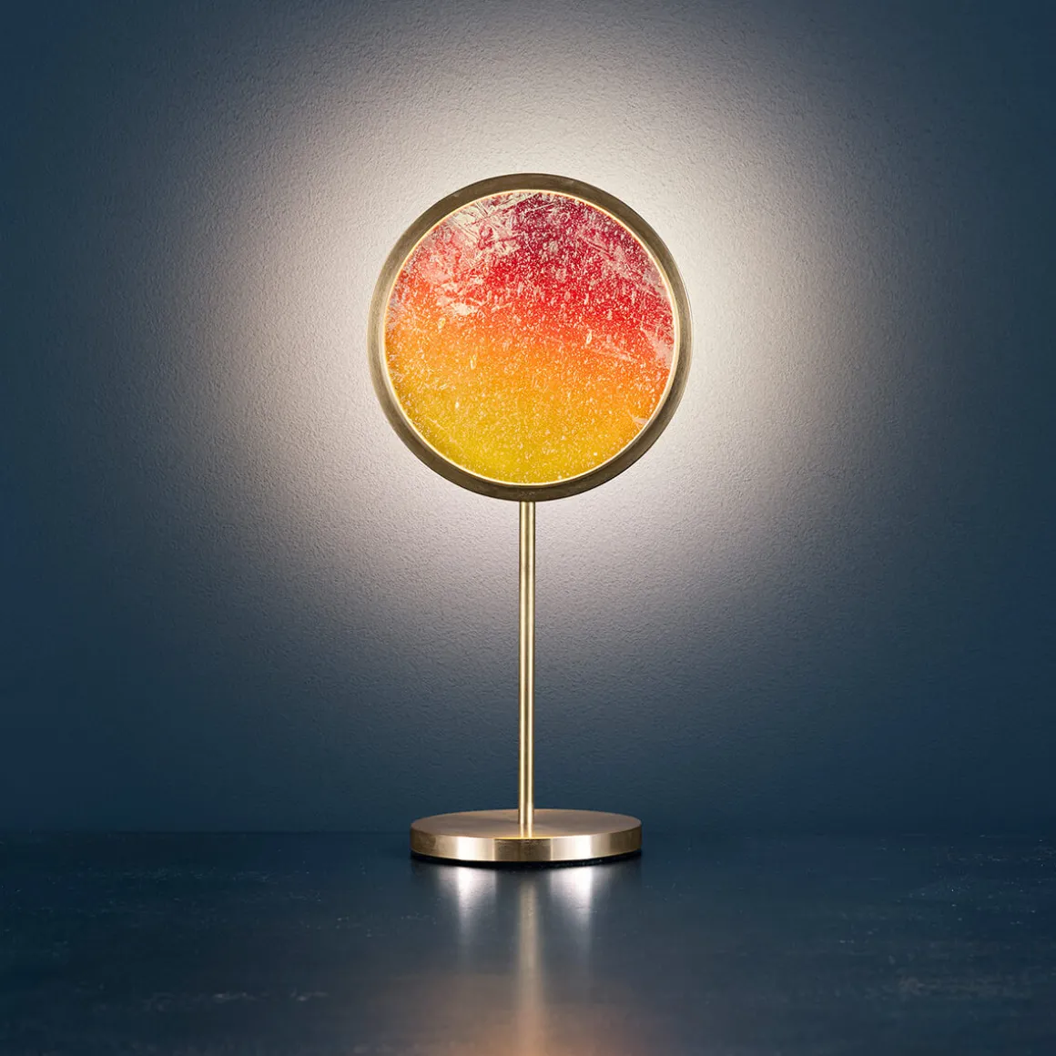 Die Catellani & Smith Talismano LED Tischleuchte ist ein wertvolles Kleinod, das zu Hause, aber auch im gediegenen Objektbereich eindrucksvolle Lichteffekte schafft. Die wurde in produktiver Zusammenarbeit von Catellani & Smith mit der Designerin Giulia Archimede kreiert. Ihre einzigartige Ästhetik verdankt sich dem Leuchtenschirm, einem nuanciert schillernden Glas, das in den Messingrahmen eingefügt ist. Je nach Lichteinfall variiert es zwischen warmen Tönen in Rot und Orange und zarten Blautönen.