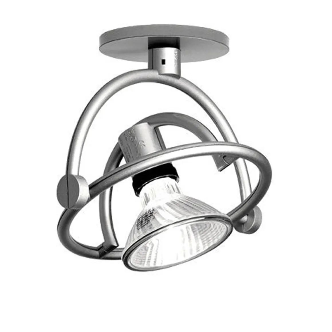 Die Cini & Nils Fariuno Parete / Soffitto Wand- und Deckenleuchte überzeugt durch ihre funktionale Gestaltung und die direkte, fokussierte Lichtausstrahlung. Mit ihrem in alle Richtungen verstellbaren Leuchtenkopf repräsentiert sie den idealen Beleuchtungsgegenstand für Innenräume, in denen eine moderne und flexibel ausrichtbare Lichtquelle benötigt wird. Hergestellt ist die Fariuno Parete / Soffitto aus silberfarben lackiertem Kunststoff. Ihre besondere Einsatzflexibilität verdankt die Wand- und Deckenleuchte ihrem grazil gestalteten Strahlerkopf, der sich beliebig drehen und wenden lässt: Der kreisrunde Haltering kann um 270° geschwenkt, der das tragende Haltebogen um bis zu 90° gekippt werden. Überdies ist der Kopf an seinem Sockel um bis zu 320° drehbar. Entworfen wurde die Cini & Nils Fariuno Parete / Soffitto bereits in den 1990er-Jahren von den italienischen Designern Franco Bettonica und Mario Melocchi.