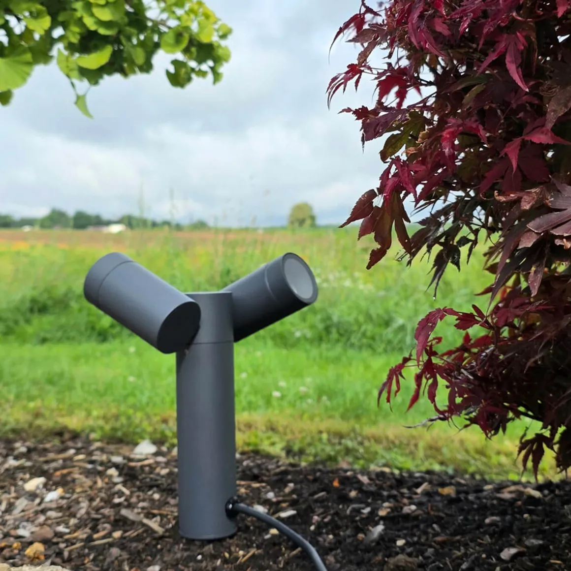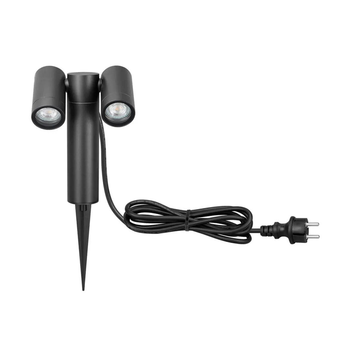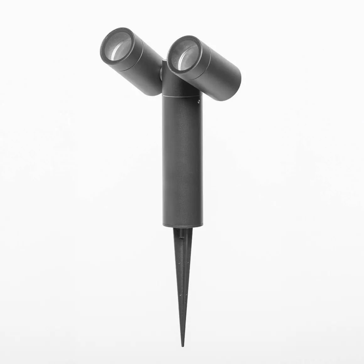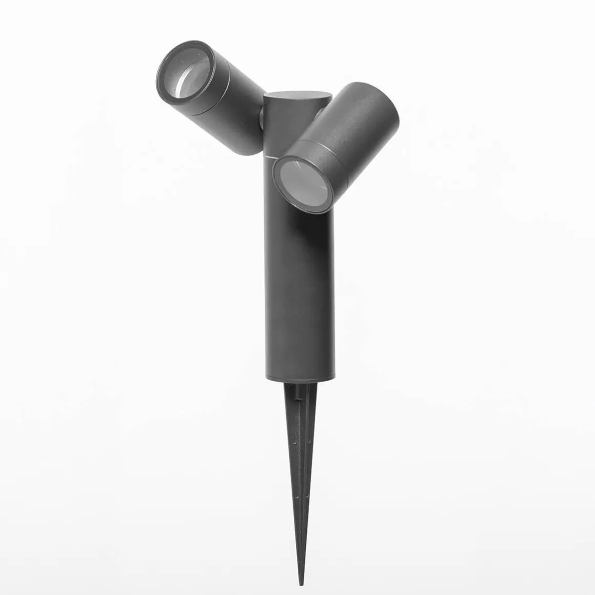 - Erdspießleuchte mit zwei verstellbaren Leuchtenköpfen