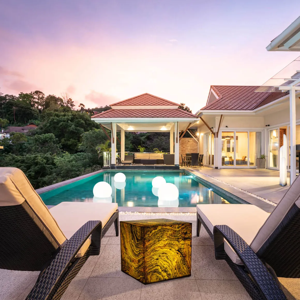 - Beleuchteter Würfel zur Akzentbeleuchtung in Gärten, auf Balkonen oder Terrassen