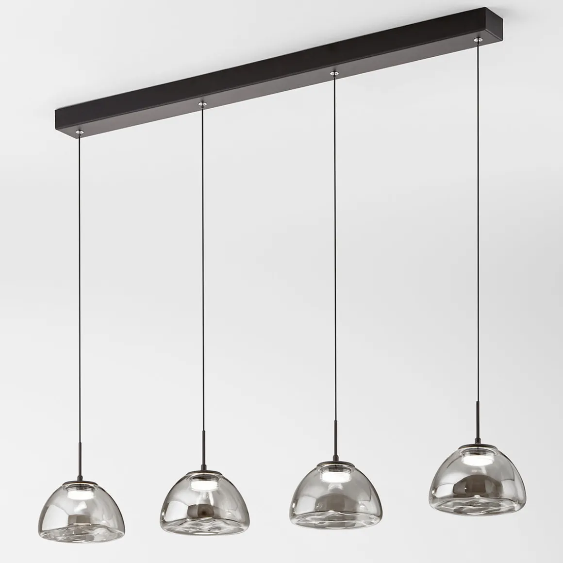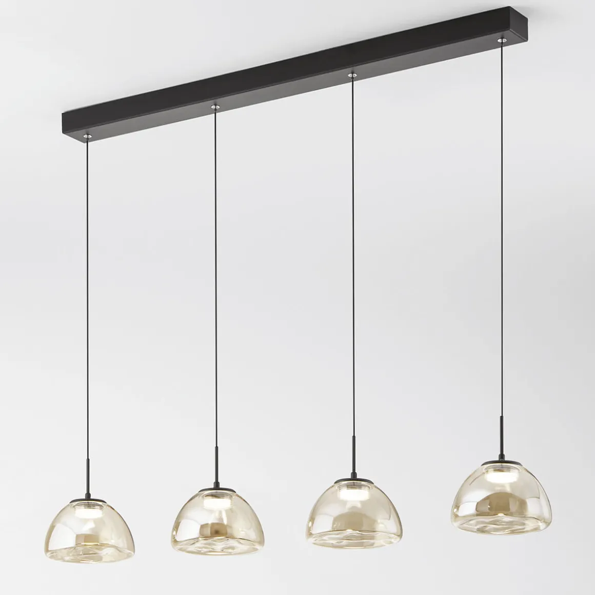 - Hängeleuchte mit 4 dekorativen Borosilikatgläsern und schwarzem Balken-Baldachin