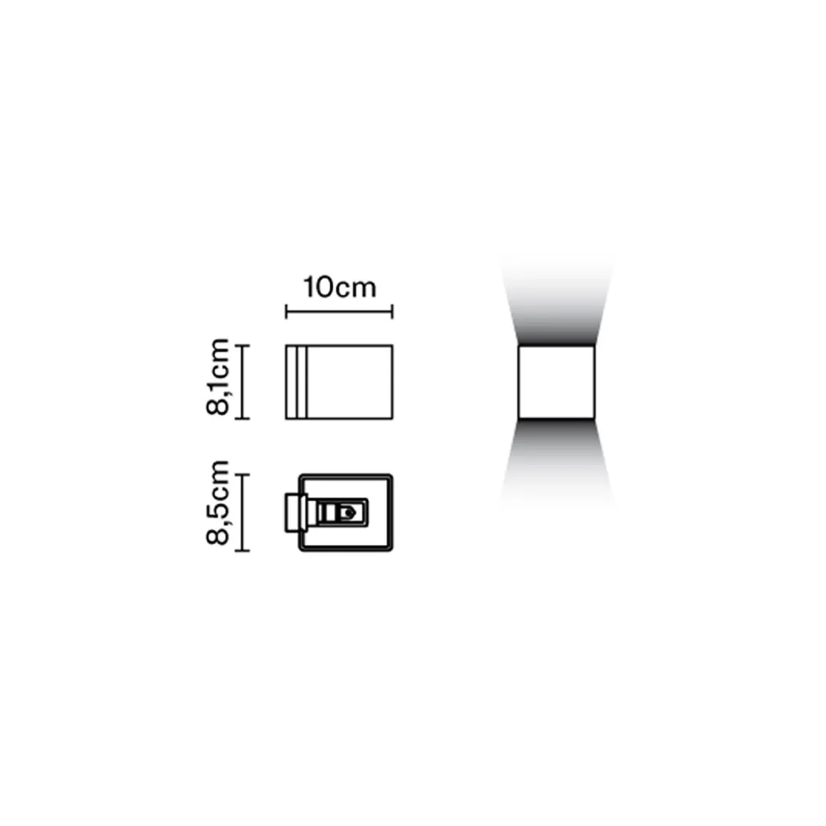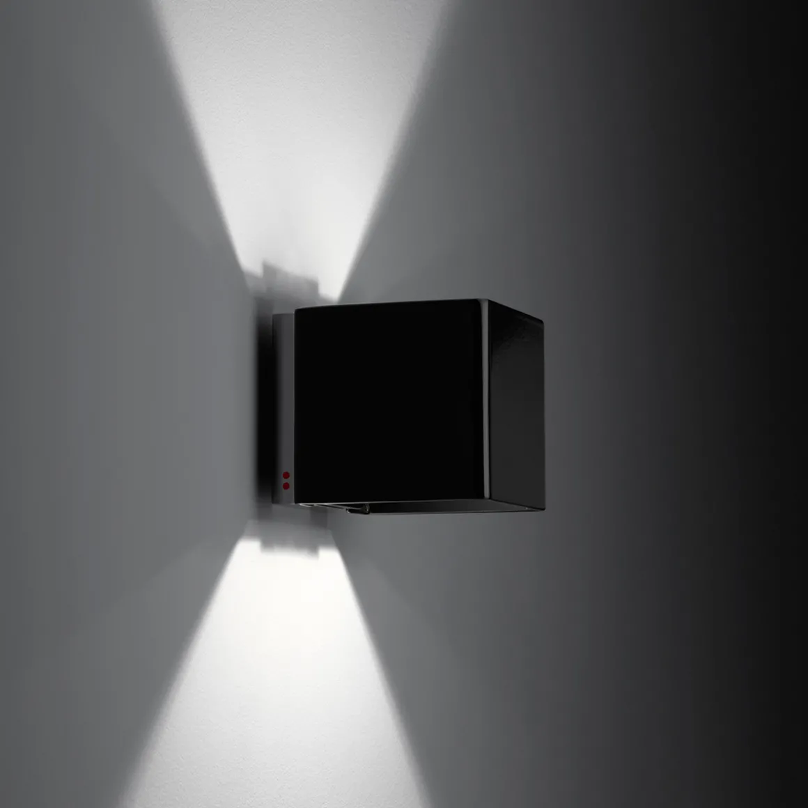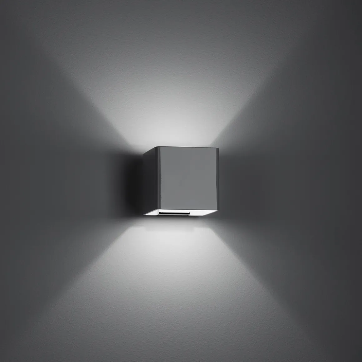 - Quaderförmige Wandleuchte aus veredeltem Metall