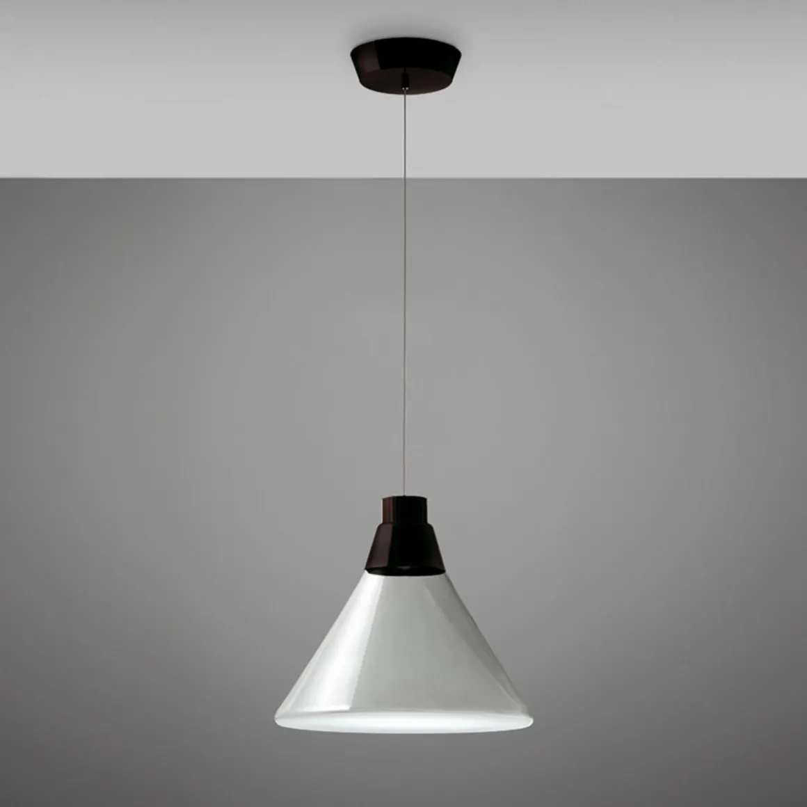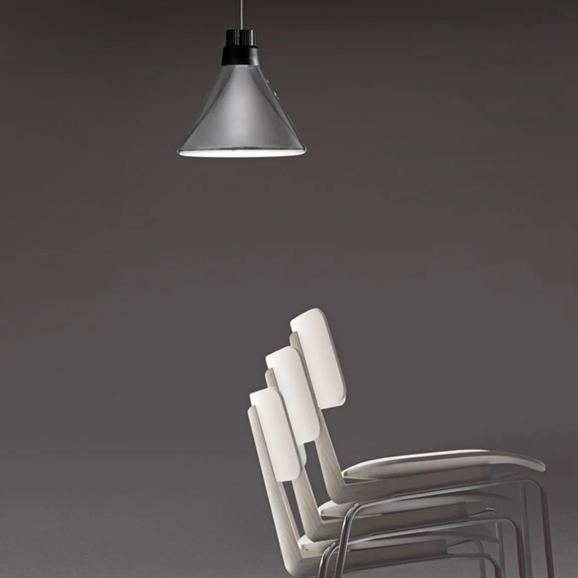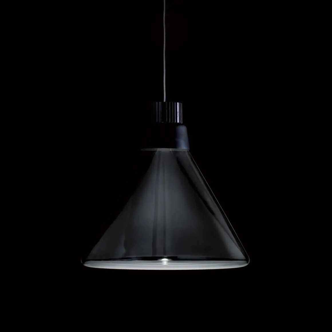 - Mit kegelförmigem Lampenschirm aus transparentem Glas
