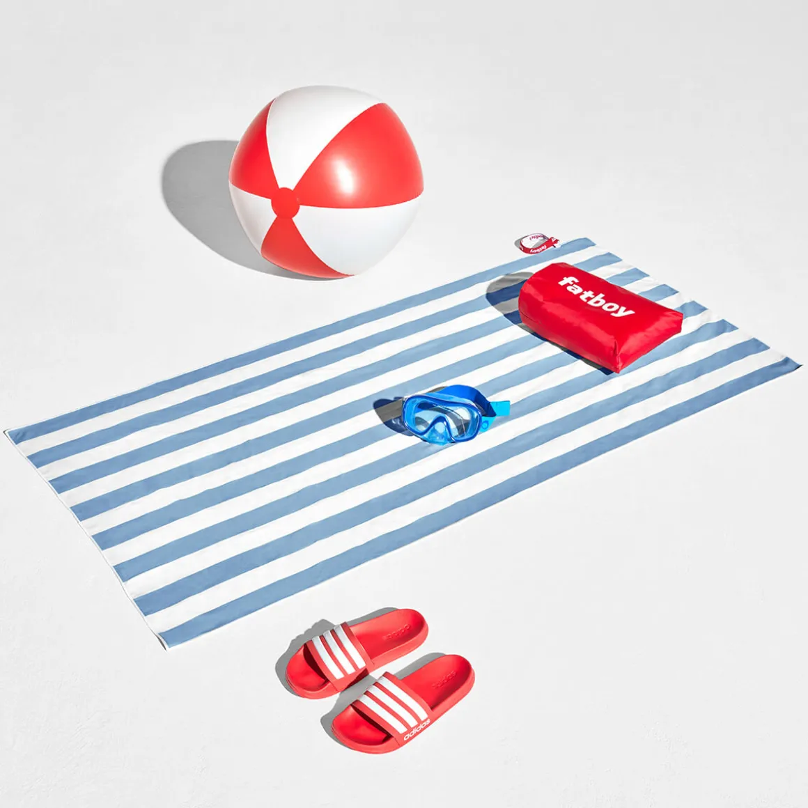 Entdecken Sie Beach Baggy – das innovative Mikrofaser-Strandtuch von Fatboy, das Reisen und Entspannen am Strand revolutioniert. Mit nur 400 g und einer Größe von 165 mal 80 cm ist das federleichte Handtuch der ideale Begleiter für sonnige Tage. Dank seines klassischen Streifenmusters und der stylishen Farben wird es zum modischen Accessoire für jeden Strandbesuch.