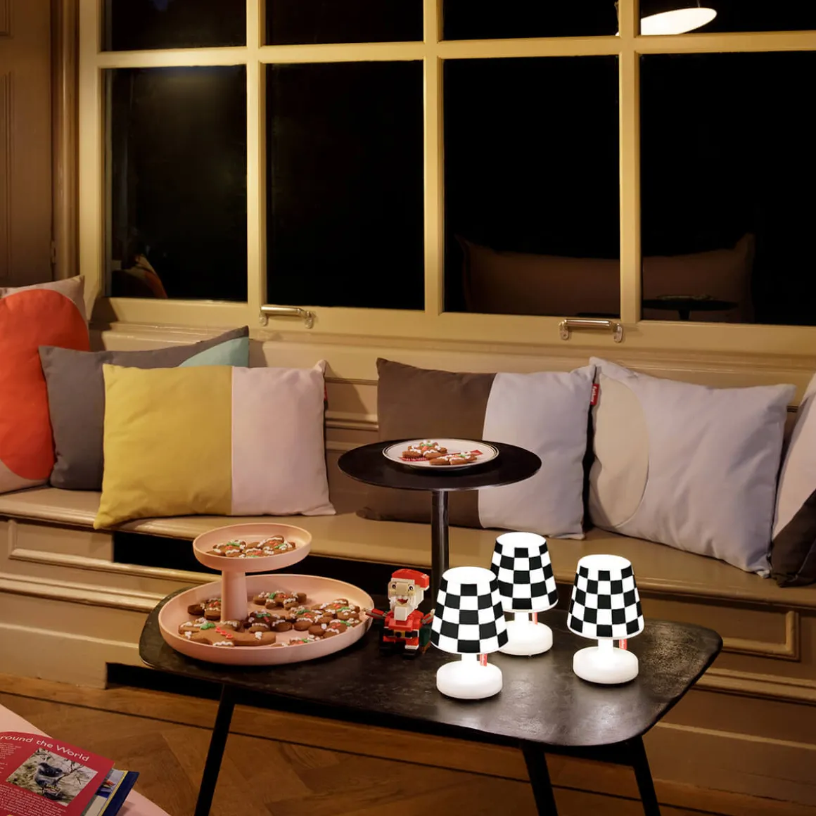 Das Edison the Mini LED Akkuleuchten-Set von Fatboy kombiniert mit seinem Mini Cappie Set Playground modernes Design mit Funktionalität. Die schwarz-weißen Schachbrettmuster der Cappies verleihen den wiederaufladbaren Leuchten einen stilvollen, abstrakten Look, der in jedem Raum für ein modernes Ambiente sorgt.