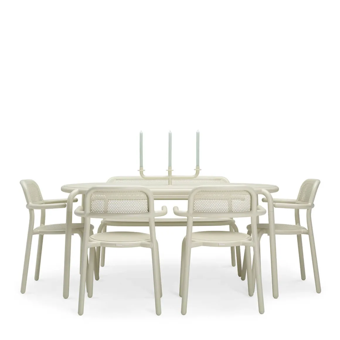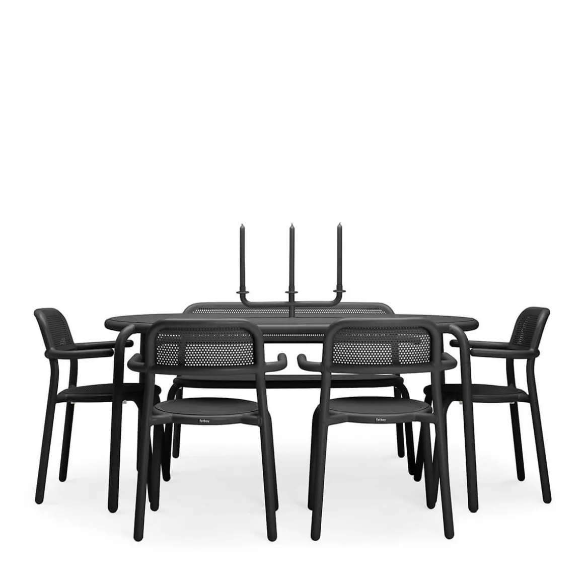 - Die Öffnung in der Mitte (Größe: 41 mm) kann als Schirmhalter dienen oder mit dem 3-armigen Fatboy Toní Kerzenständer kombiniert werden