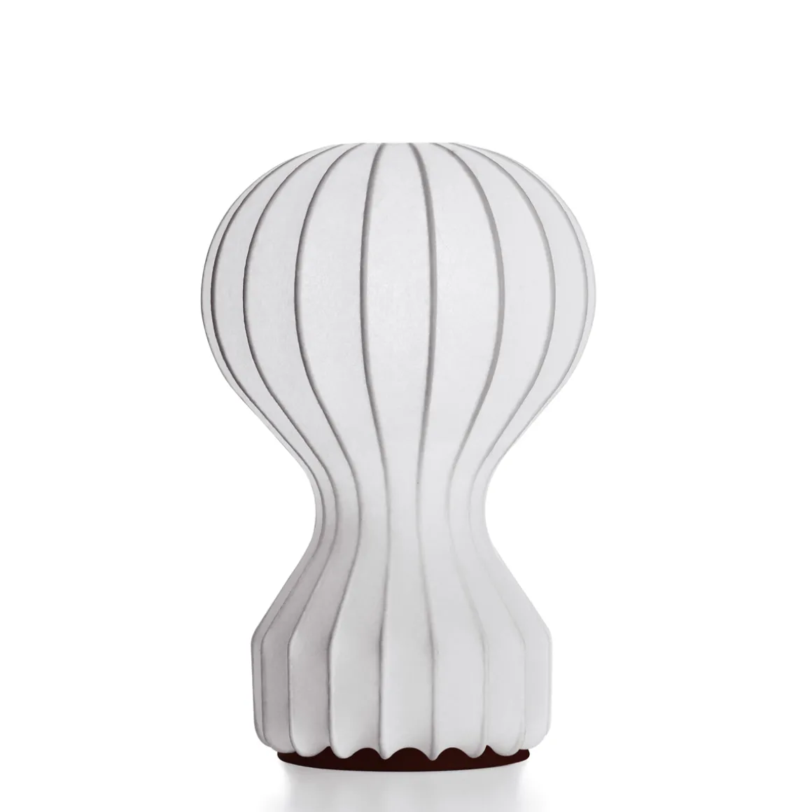 Das faserige Material beschert der Flos Gatto Tischleuchte die Gestalt eines seidenumsponnenen Insekts. Doch verbirgt sich in den organischen Wölbungen dieses Kokons kein Lebewesen, sondern ein , das seine Umgebung in ein diffus gestreutes, stimmungsvolles Licht hüllt.