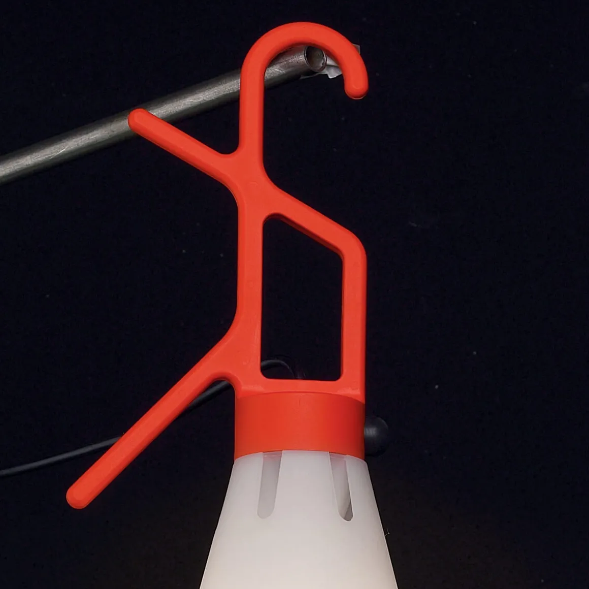 Dank ihres praktischen Griffs, der zugleich als Kabelaufwickler dient, lässt sich die an Haken, Leisten oder Geländern aufhängen – eben überall dort, wo man sie gerade braucht. Umgedreht lässt sich die Mayday an der dreieckförmigen Aussparung des Leuchtenschirms befestigen. Das Elektrokabel mit einer Nutzlänge von 485 cm trägt zur flexiblen Anwendung der Allzwecklampe bei.