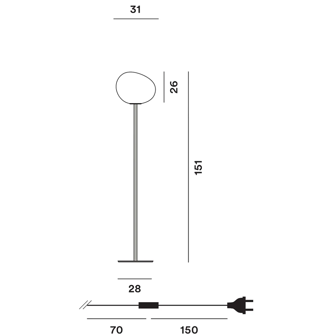 Die Lichtquelle ist gänzlich von mundgeblasenem, satiniertem Glas umgeben und strahlt in jedem Ambiente eine warme, weiche und gleichmäßige Helligkeit aus. Getragen wird der abgerundete Leuchtenschirm von einem schlanken Fuß aus lackiertem Metall und Polyurethan.