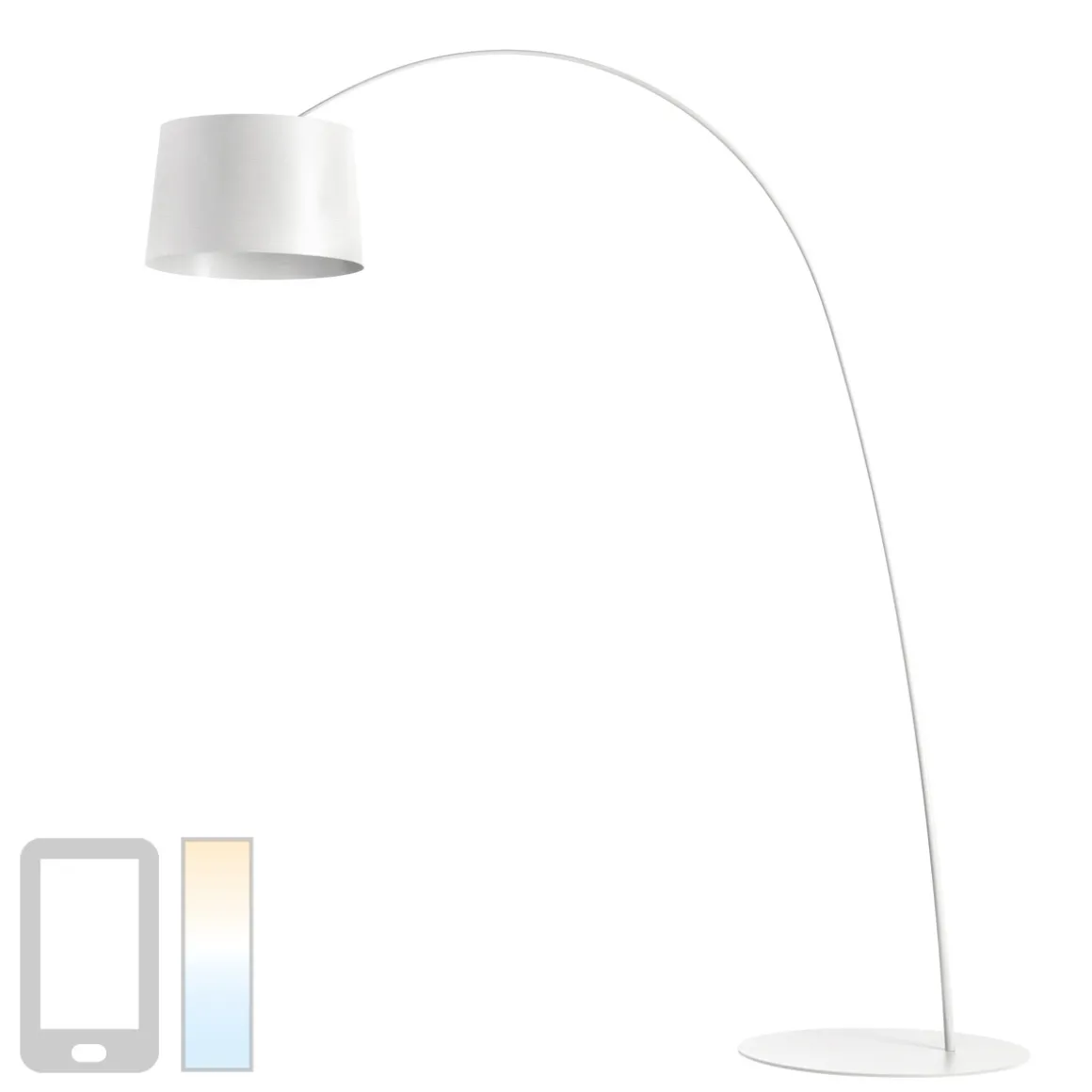 Mit der Tunable-White-Edition der Foscarini Twiggy Terra LED profitieren Sie von den Vorzügen modernster Lichttechnologie. Die elegant gebogene Stehleuchte lässt sich nicht nur bequem via Bluetooth steuern, sondern ist zudem mit innovativer Tunable-White-Technologie ausgestattet. Diese erlaubt es, die der stufenlos zu variieren: von warmweißen 2.700 Kelvin bis hin zu anregenden 5.000 Kelvin, wie sie der Lichtwirkung von Tageslicht nahekommen.