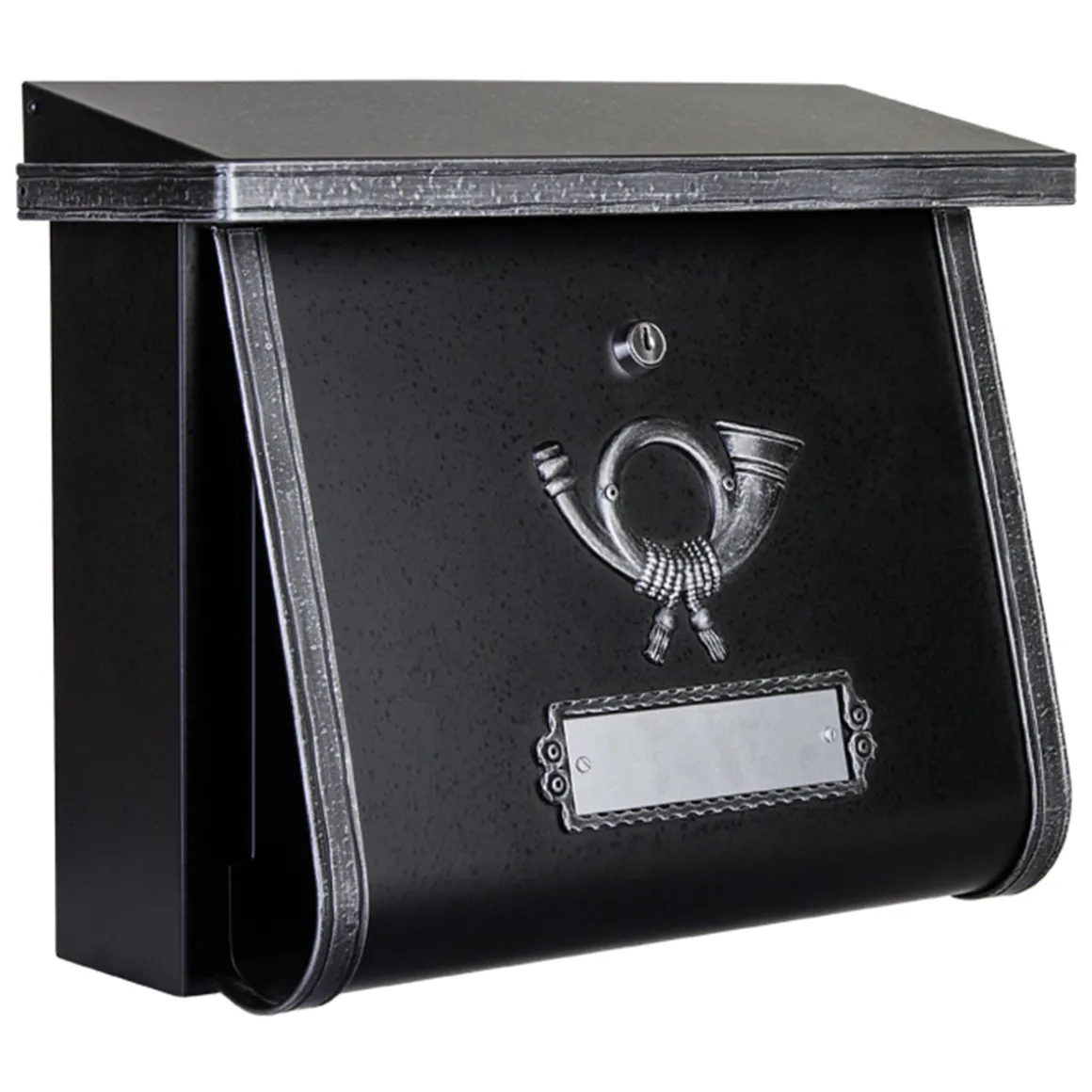 - Antik anmutender Briefkasten mit dekorativer Posthorn-Applikation