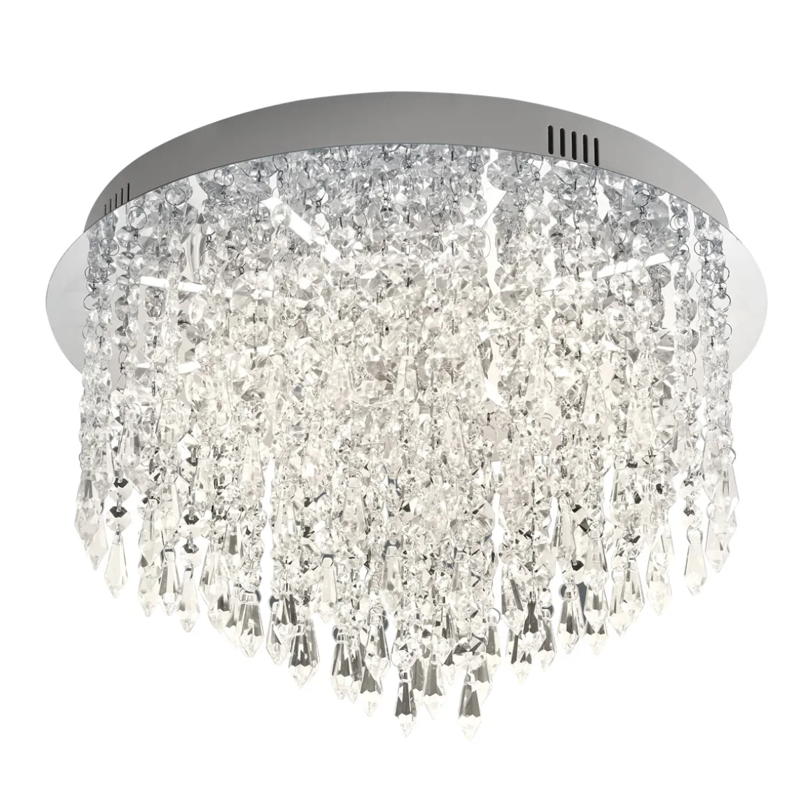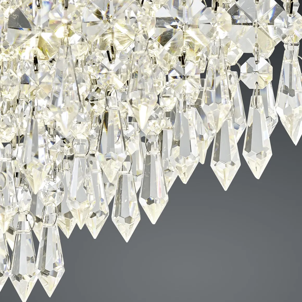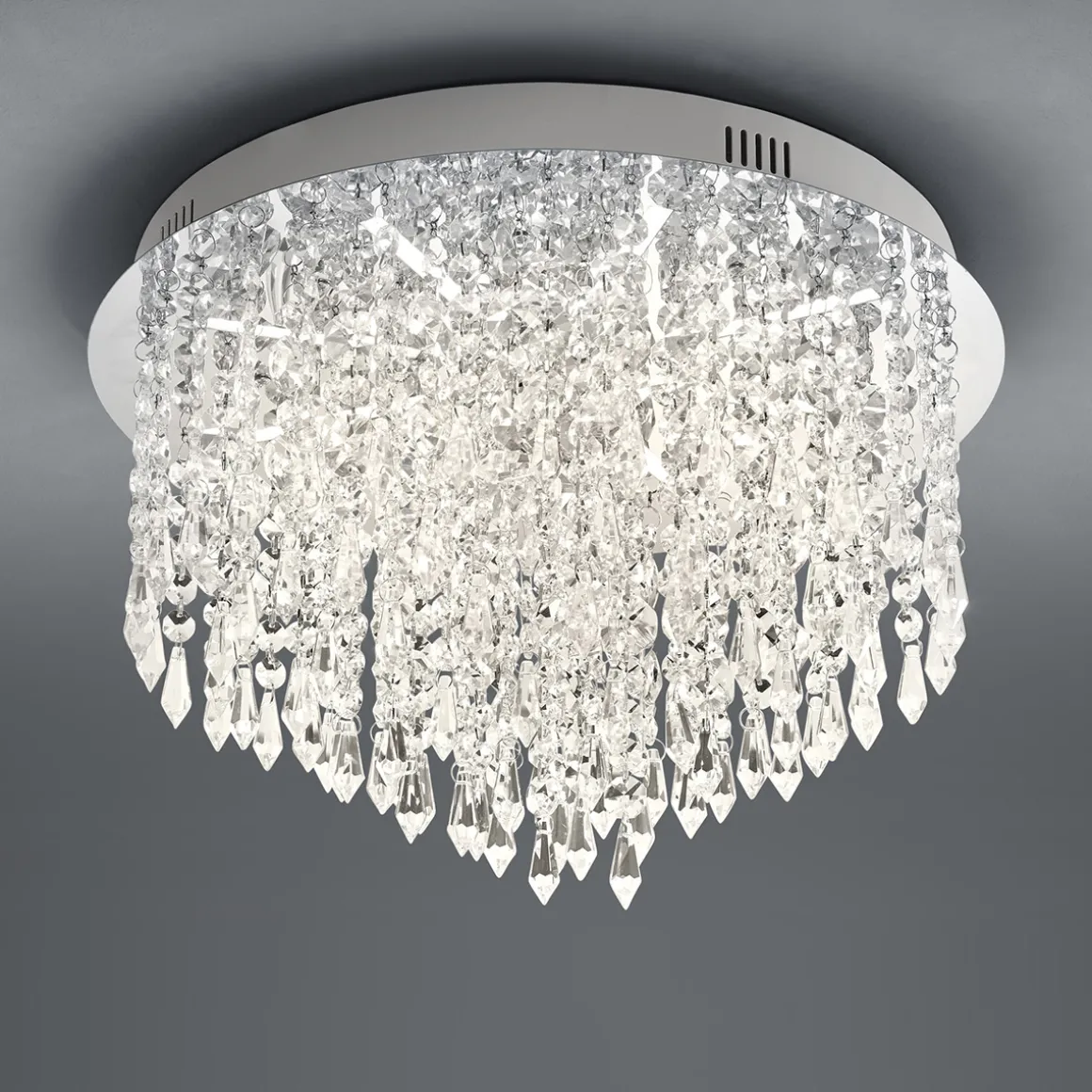 Verleihen Sie Ihrem Zuhause eine Prise Glamour! Die Palace LED Deckenleuchte setzt Ihren Wohnbereich perfekt in Szene. Der extravagante Glasbehang erinnert an opulente Lüster und schafft glanzvolle Lichtreflexe, die alle Blicke auf sich ziehen. Hinter dem klassisch anmutenden Design verbirgt sich neueste Lichttechnik: Stufenlos gedimmt wird die via mitgelieferter B-Link Fernbedienung, die mit bis zu neun weiteren Empfängern verbunden werden kann. Die Fernbedienung können Sie frei bedienen oder auch an einer Wand oder auf dem Mobiliar befestigen. Bitte beachten Sie, dass die Deckenlampe nicht mit einem Wanddimmer kombiniert werden darf.