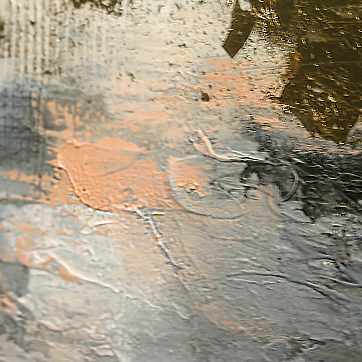 - Der breit ausgeführte, pastose Farbauftrag kreiert in Kombination mit netzartigen Strukturen wirkungsvolle plastische Effekte
