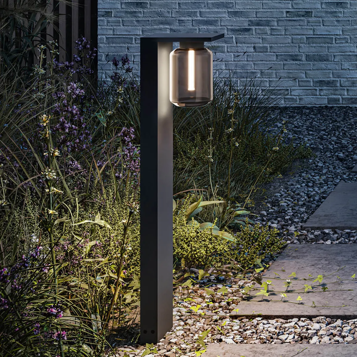 - Modern-schöne Pollerlampe mit geblasenem Glasschirm
