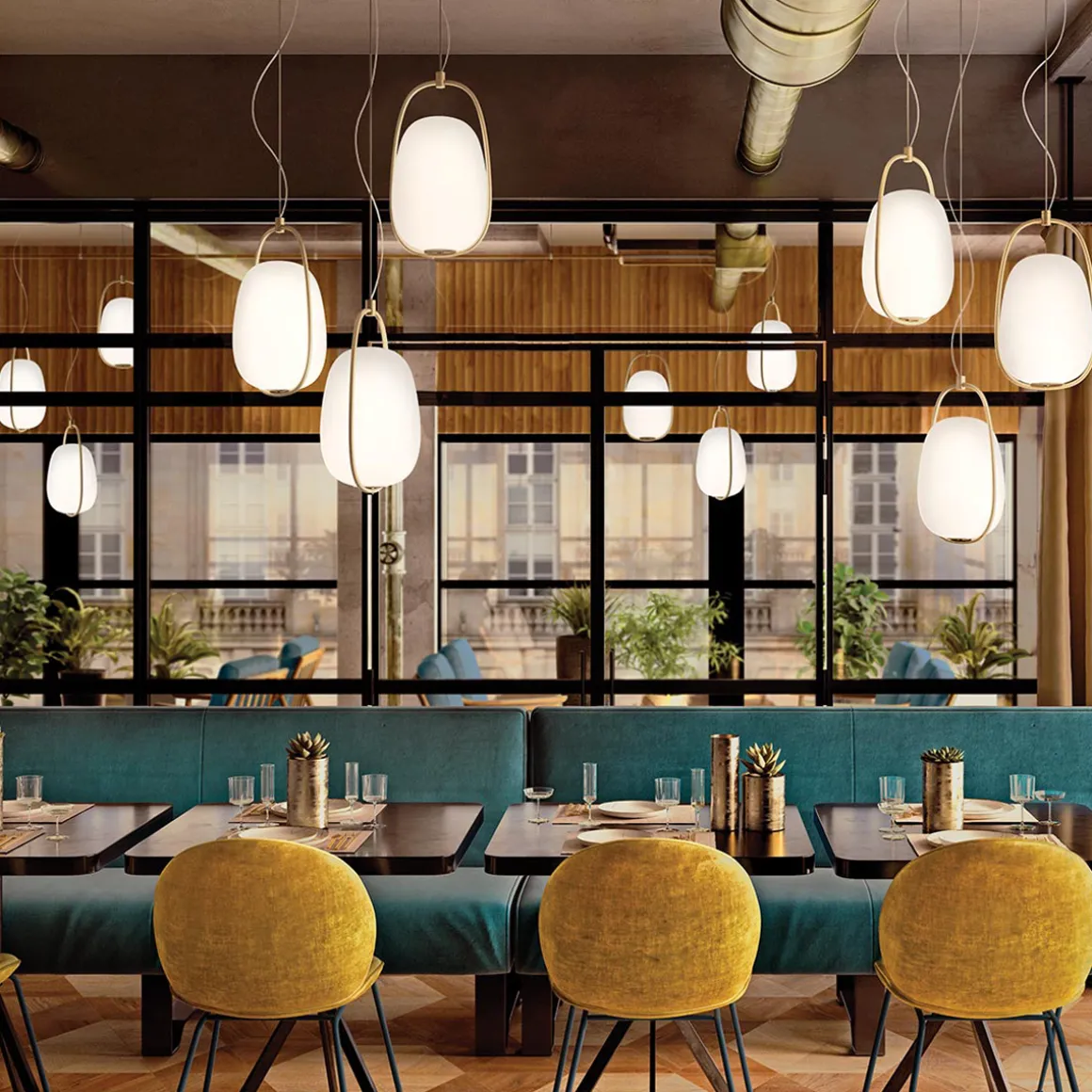 - Laternenförmige Pendelleuchte mit klarer Linie