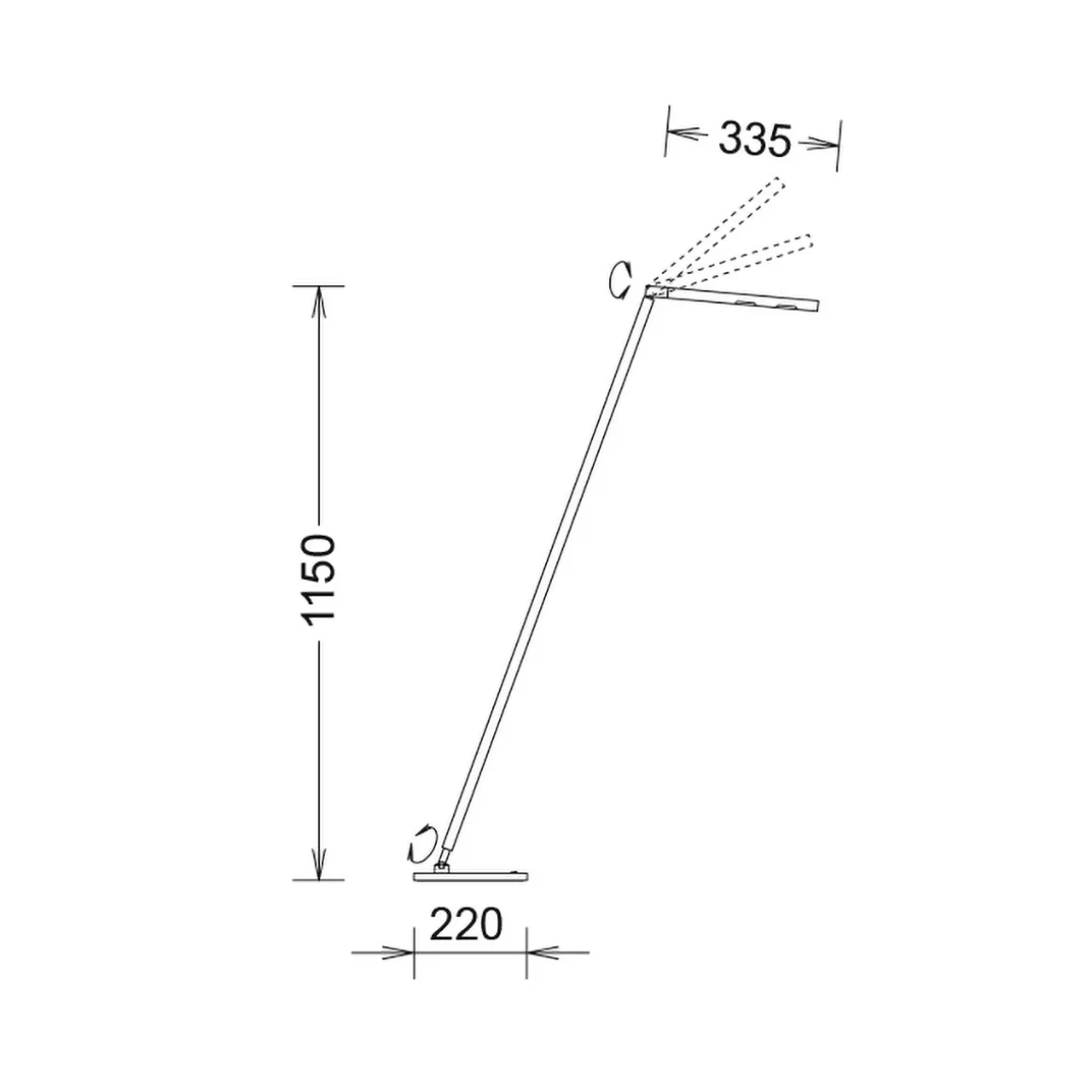 - Mit ausrichtbarem Leuchtenkopf und schwenkbarem Fuß