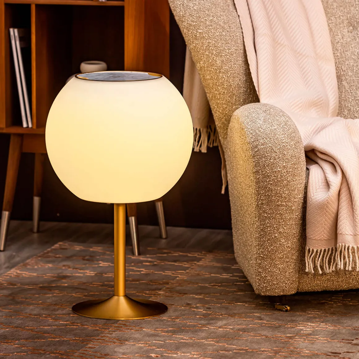 Für einen soliden Stand empfiehlt sich die Kombination mit der optional erhältlichen schweren Grundplatte. Und zusammen mit der ebenfalls als Zubehör verfügbaren Marmorplatte verwandelt sich das Ensemble in einen luxuriösen Beistelltisch, der Ihr Zuhause um ein elegantes, multifunktionales Einrichtungsaccessoires bereichert. Setzen Sie mit dem Sphere Extender L von Kooduu ein stilvolles Statement und genießen Sie die erweiterten Möglichkeiten Ihrer Sphere Lautsprecherlampe!