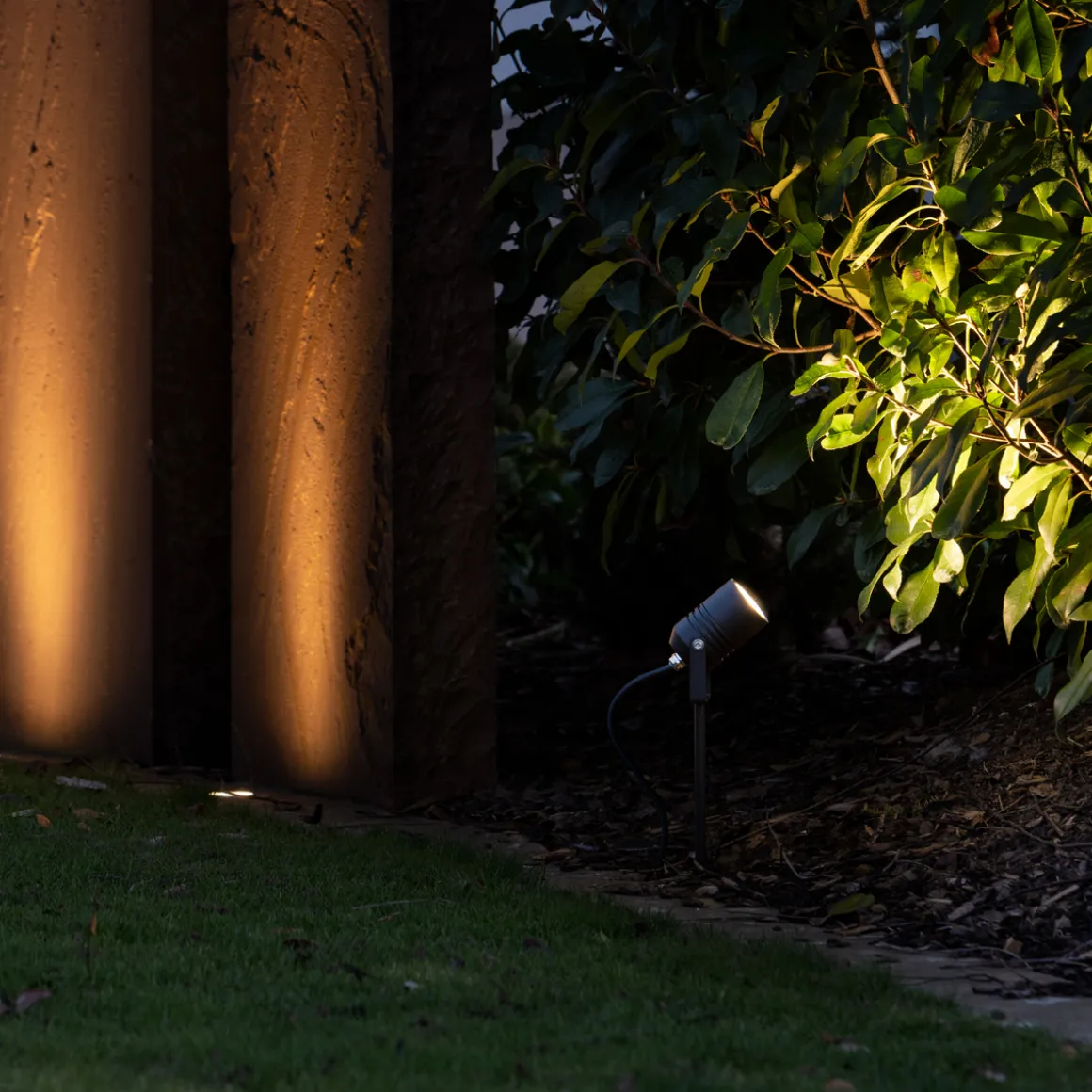- Funktionaler Strahler mit Erdspieß für eine flexible Montage