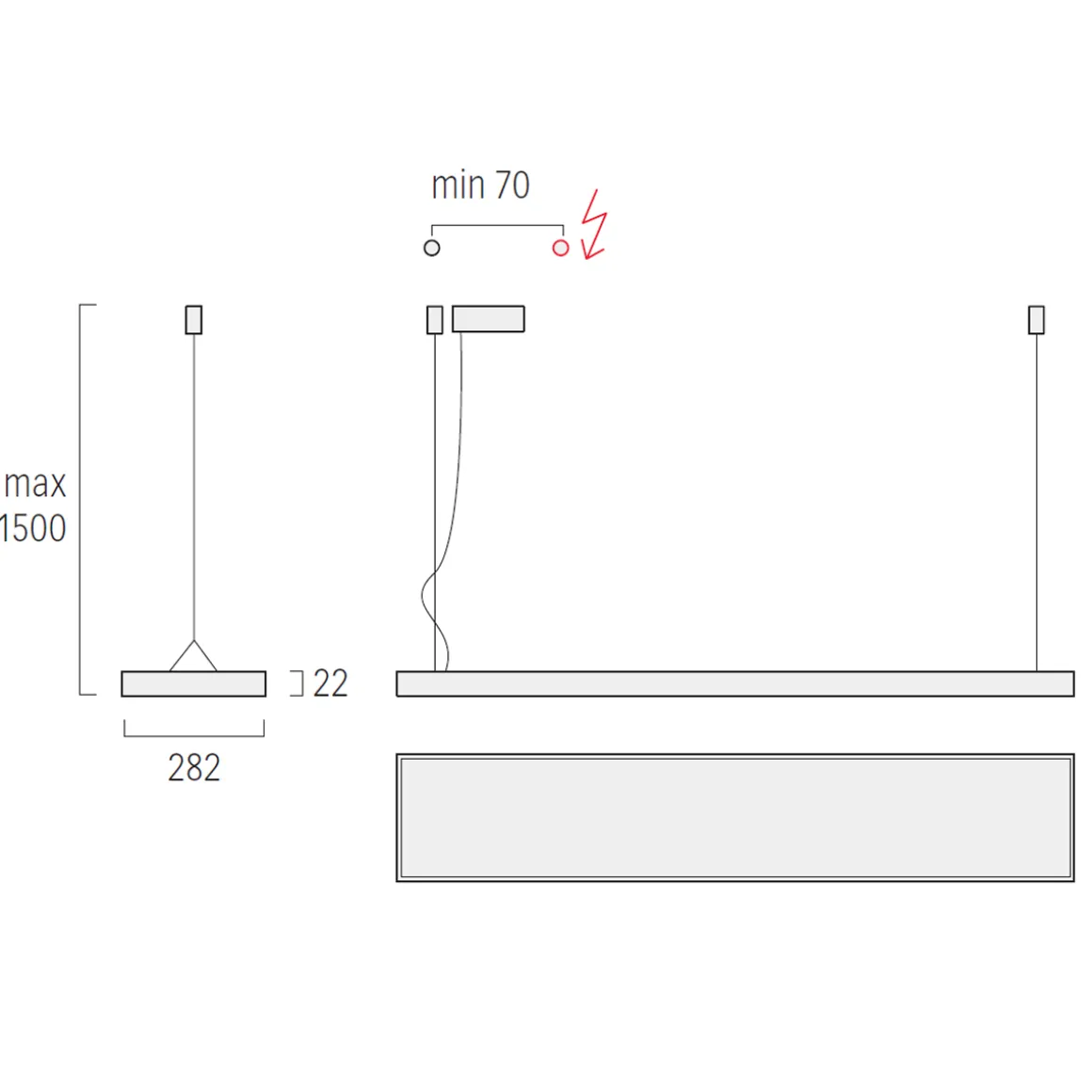 - Y-Seilabhängung zur Montage stufenlos höhenverstellbar