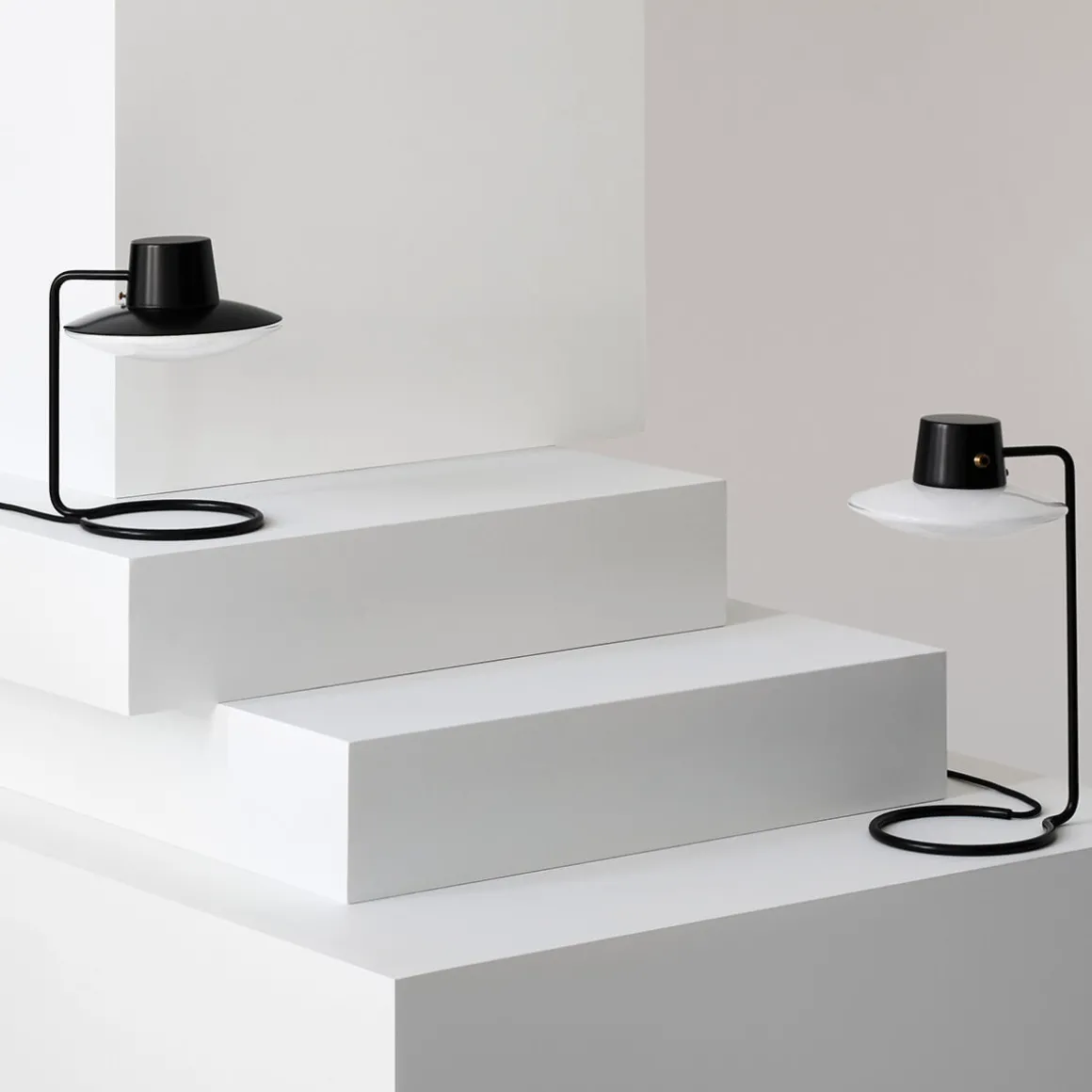Erhältlich ist die Louis Poulsen AJ Oxford Tischleuchte mit oder ohne Oberschirm aus schwarzem Metall. In ihrer Version mit Oberschirm sorgt die für eine stärkere Lichtabstrahlung nach unten hin, was sich zur Beleuchtung auf Schreibtischen empfiehlt. Ohne metallenen Reflektor ergibt sich ein faszinierender Glorienschein aus Licht um den Opalglasschirm herum.