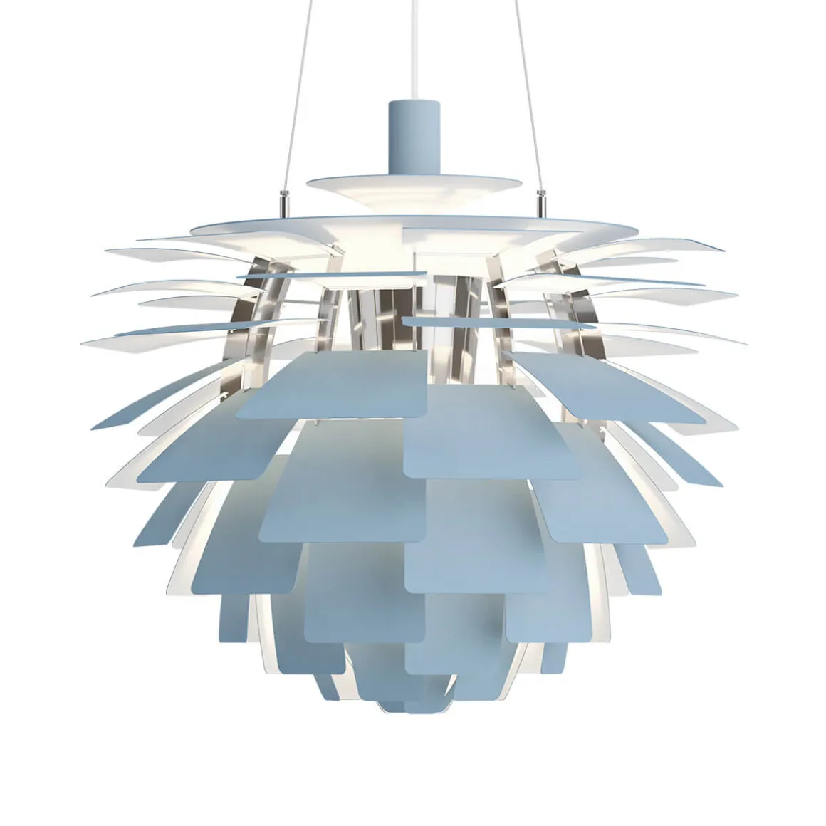 Die PH Artichoke Pendelleuchte von Louis Poulsen ist ein Meisterwerk des skandinavischen Designs – entworfen 1958 von Poul Henningsen für das Restaurant Langelinie Pavillonen in Kopenhagen. Bis heute gilt sie als stilprägende Designikone mit unverwechselbarer Formsprache. Ihr außergewöhnlicher Aufbau aus 72 präzise angeordneten Metallblättern sorgt für eine rundum blendfreie Lichtausstrahlung, die Räume auf besonders stimmungsvolle Weise in Szene setzt. Die Lichtabstrahlung erfolgt sowohl nach innen als auch nach außen und erzeugt so eine symmetrisch-sanfte Ausleuchtung mit dekorativer Wirkung.