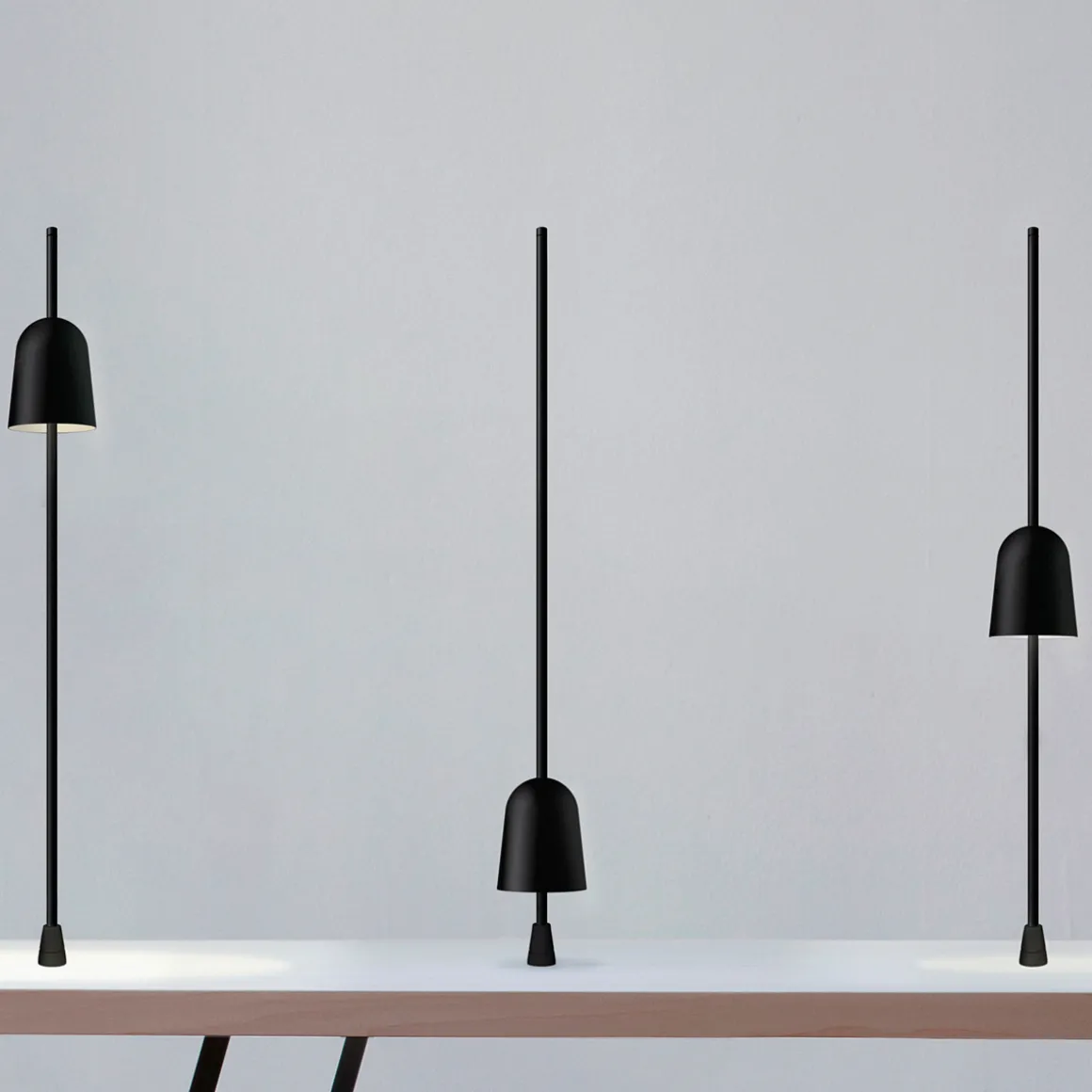 - Ein- und Ausschalten der Tischleuchte erfolgt durch Hoch- und Hinabschieben des Leuchtenschirms