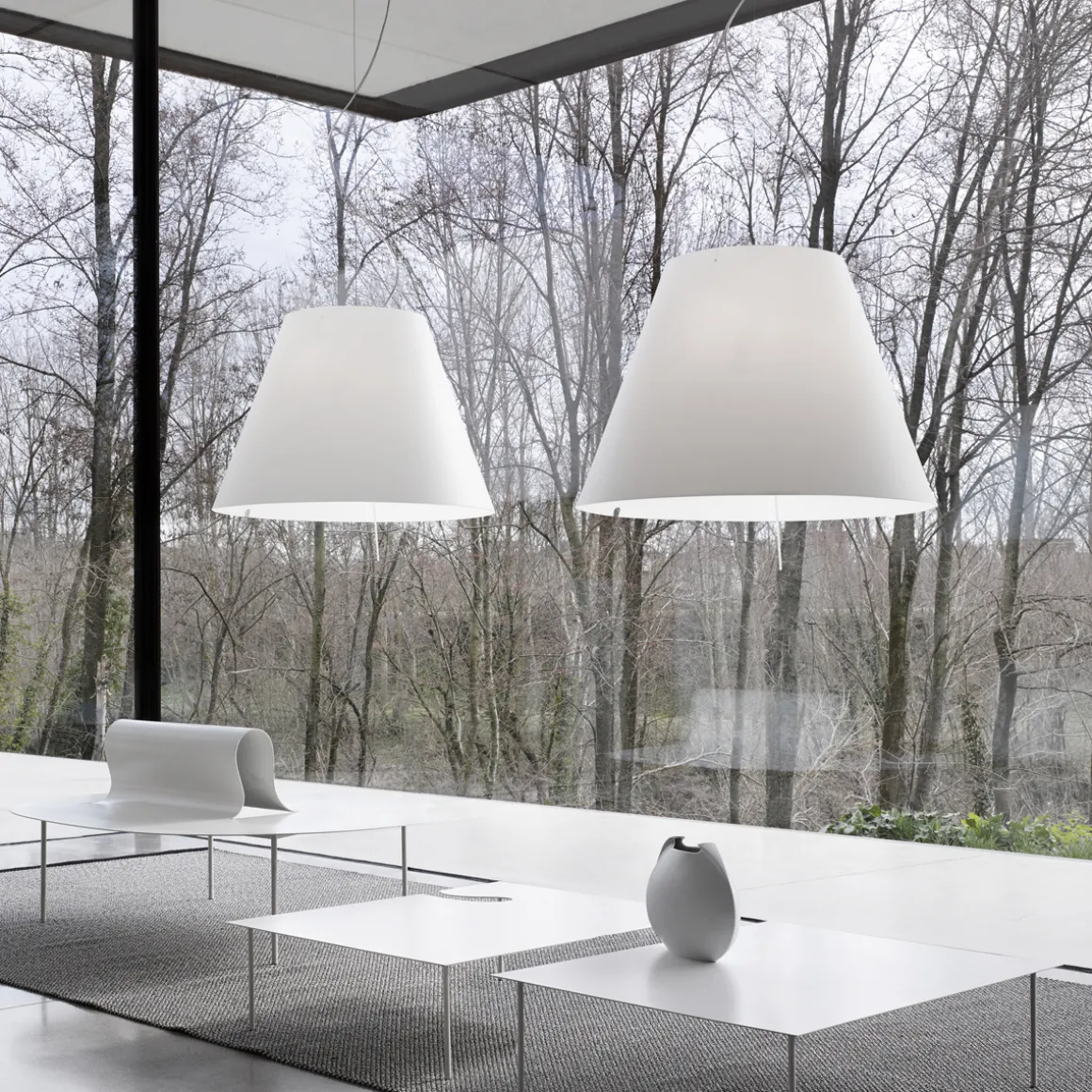 Hierdurch eignet sich die Grande Costanza Sospensione vor allem für großflächige Raumbereiche, etwa in Restaurants, Wartesälen oder einem größeren Wohnzimmer, wo sie ein behagliches, einhüllendes und diffus gestreutes Licht erzeugt.