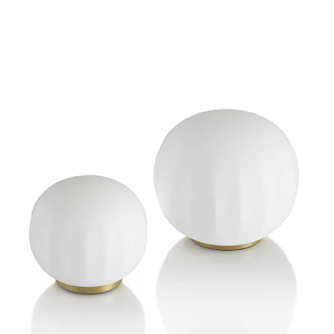 Der runde Sockel ist wahlweise in weiß lackiertem Aluminium oder mit edlem Messing-Finish erhältlich und ergänzt den zarten Schirm mit stilvoller Stabilität. Dank ihrer klaren Form fügt sich die Tischlampe mühelos in moderne wie klassische Interieurs ein – von privaten Wohnbereichen bis hin zu hochwertig eingerichteten Hotels, Lounges und Empfangsräumen.