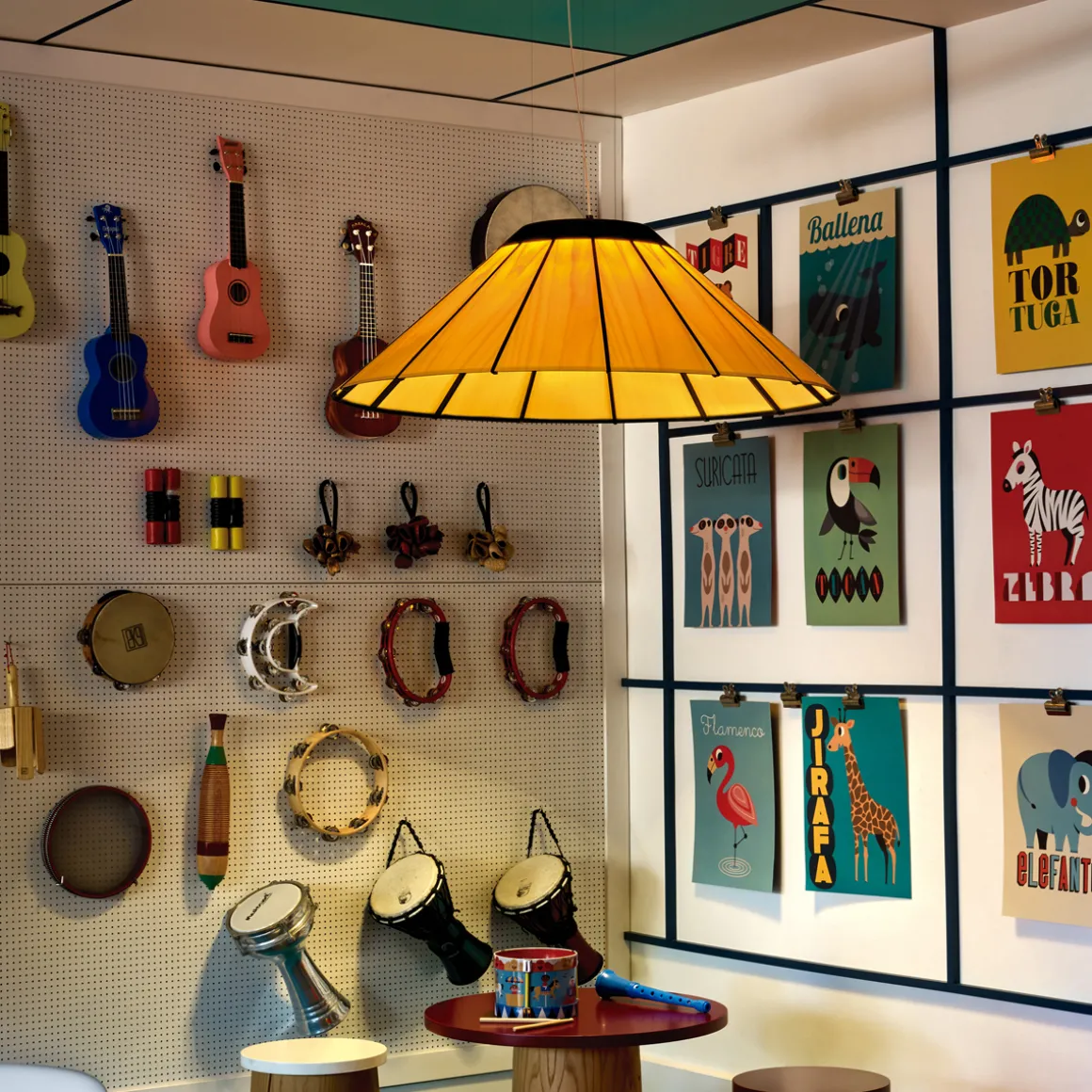 - Schirmförmige Pendellampe in asiatisch anmutendem Design