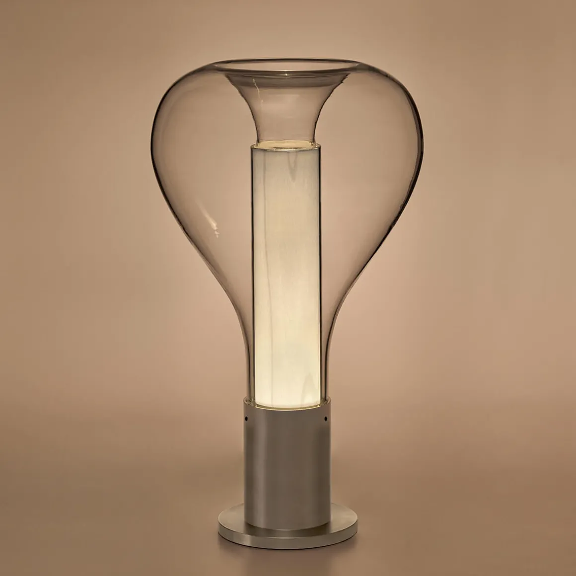 Die Eris Table von LZF Lamps, eine Kreation des spanischen Mayice Studios, verkörpert die perfekte Harmonie zwischen Natur und Handwerk. Die Tischlampe kombiniert eine sphärische Form aus transparentem Borosilikatglas, gefertigt von dem erfahrenen Glasbläser Eduardo Garuti, mit einem zylindrischen Schirm aus Echtholzfurnier, der die Lichtquelle umschließt. Die Basis aus gedrehtem Aluminium verleiht der Stabilität und eine moderne Note.
