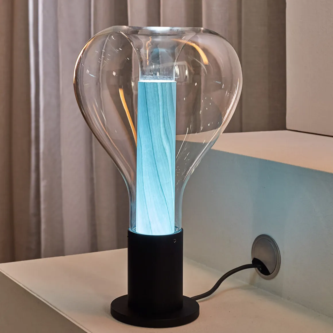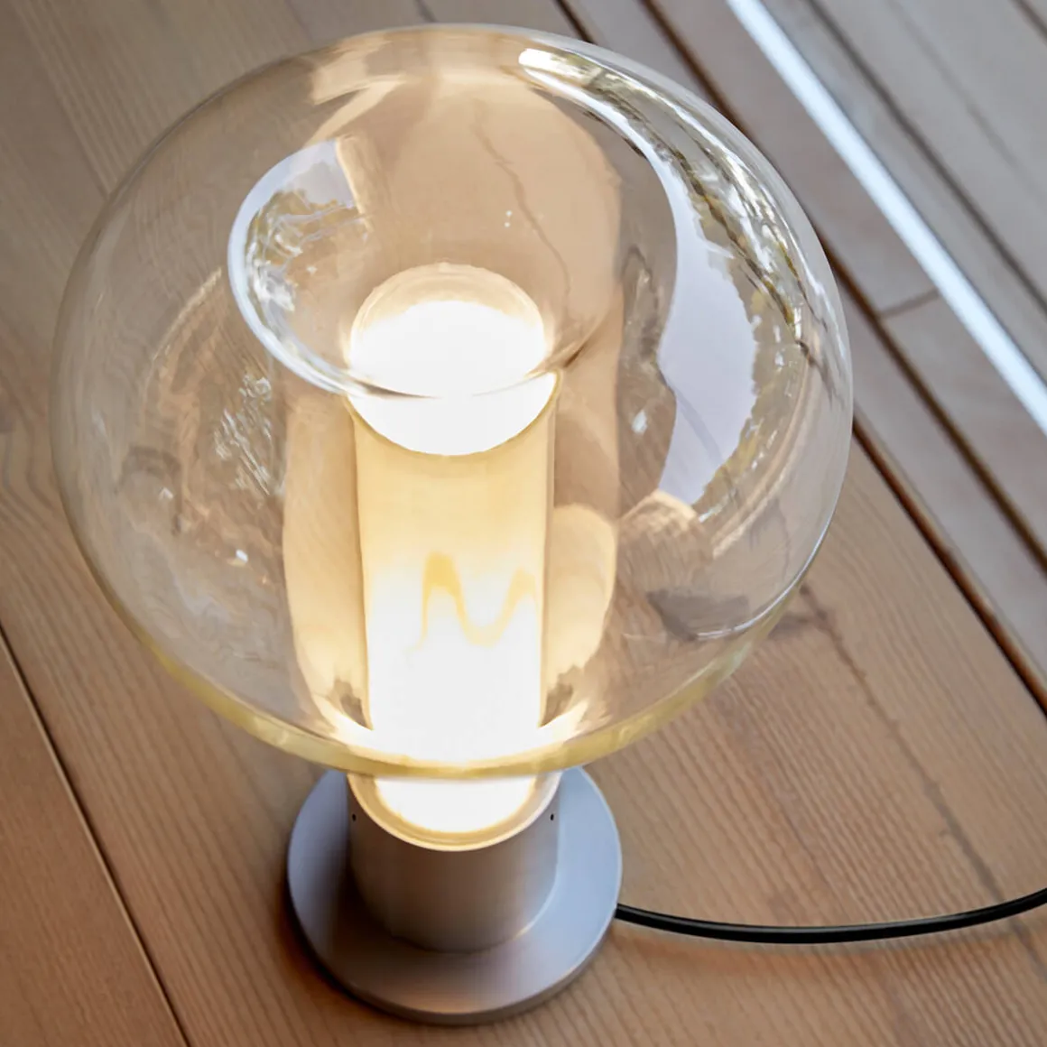 | Material/Oberfläche: | Handgeblasenes Borosilikatglas, Metall schwarz matt, Kabel: schwarz |