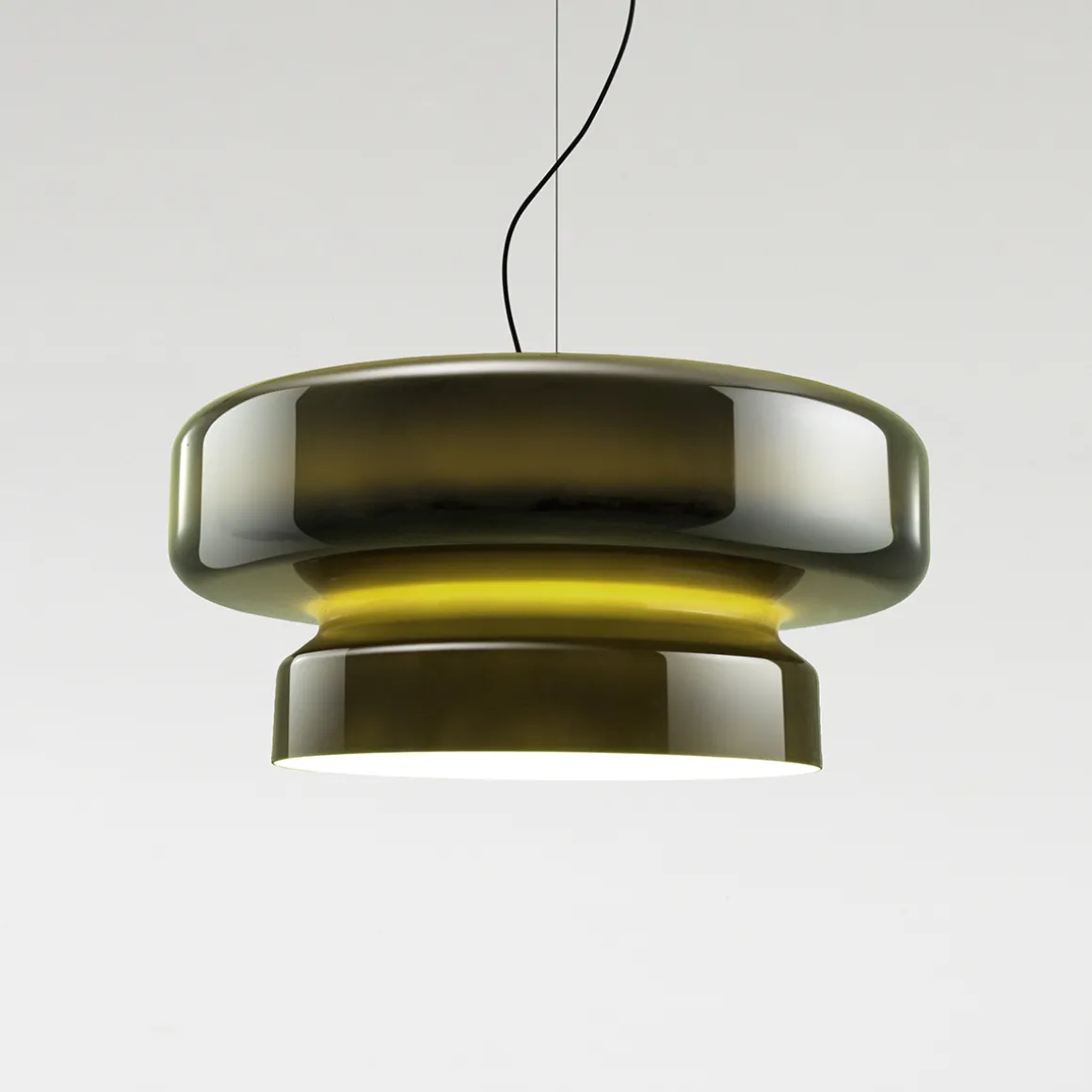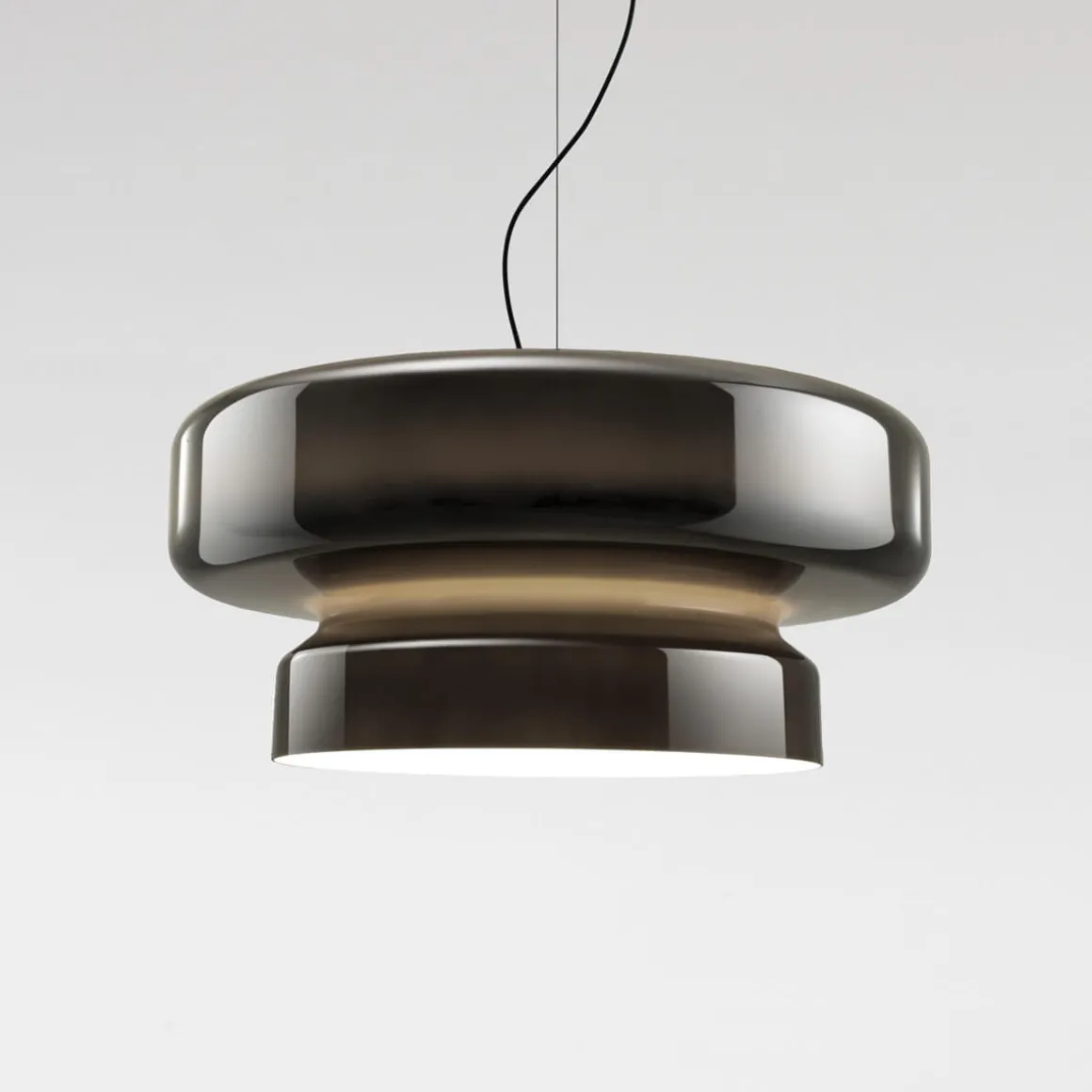 Obwohl die Pendellampe auf den ersten Blick an eine mundgeblasene Glasleuchte erinnert, besteht sie aus leichtem, widerstandsfähigem Polycarbonat. Dieses Material ermöglicht ein einzigartiges Design, das mit Glas nicht realisierbar wäre: Die vereint konkave und konvexe Formen in einer einzigen Struktur, wodurch ein beeindruckendes Spiel aus Licht und Schatten entsteht. Das zweigeteilte Design mit einer sichtbaren Trennlinie ist Teil des Fertigungsprozesses und macht jedes Produkt zu einem unverwechselbaren Unikat.