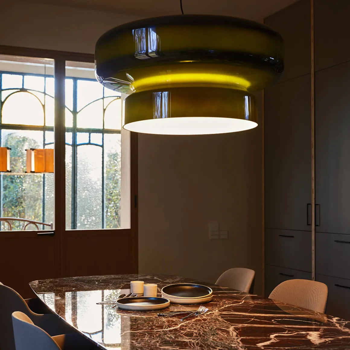 Die Bohemia 84 von Marset, entworfen von Joan Gaspar, vereint imposante Größe mit außergewöhnlicher Lichtästhetik. Ihr beeindruckendes Volumen und ihre innovative Materialwahl machen sie zu einer einzigartigen (Licht-)Erscheinung. Perfekt für Esszimmer, Restaurants, Hotels und Lounges, setzt sie faszinierende Lichtakzente und verleiht Räumen eine moderne Eleganz.