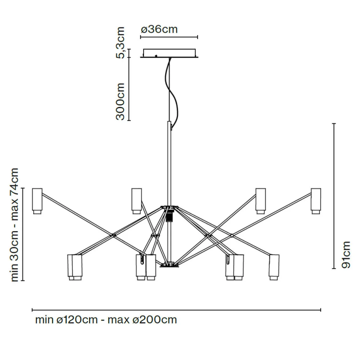 - Flexibler Kronleuchter mit zeitlos wirkender Ästhetik