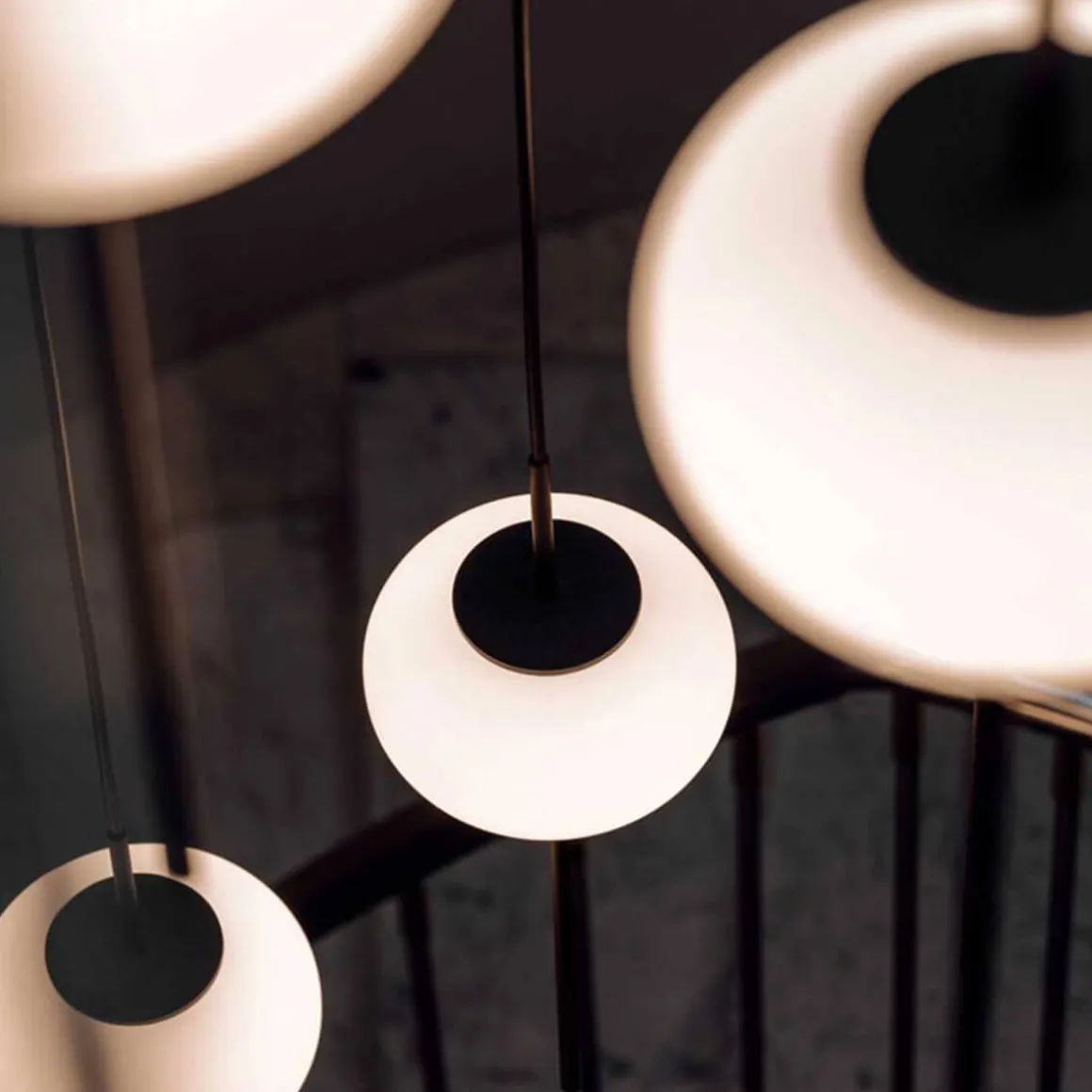 Filigrane in schwarz matter Oberfläche mit einem runden Opalglas Diffusor, die Astros Pendelleuchte ist höhenverstellbar und erhältlich in zwei Größen. Die Pendelleuchte mit einer Pendellänge von max. 300 cm ist vorkonfiguriert und wird mit einem einfachen Baldachin und einem Pendel angeboten. Auf Anfrage sind mehrflammige Leuchten aus 2, 3, 4, 5, oder bis zu 6 Pendel möglich.