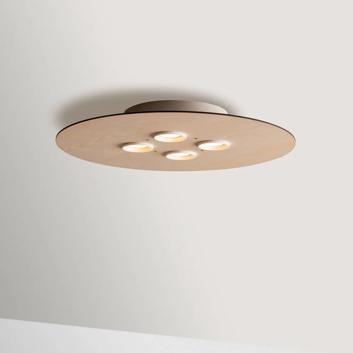 - Runde Deckenleuchte aus Eschenholz mit vier Strahlern